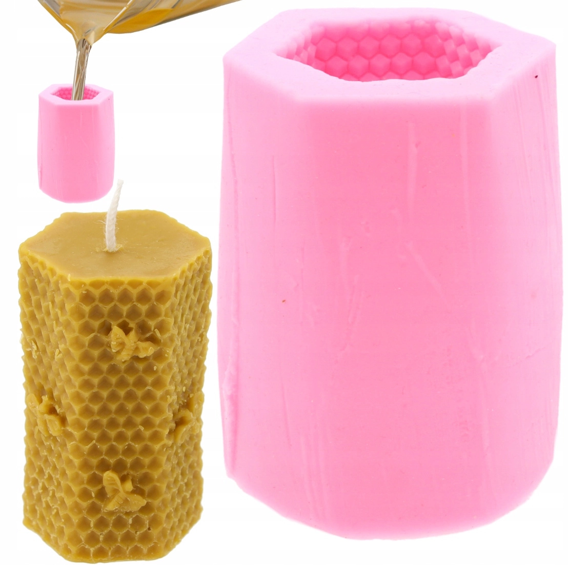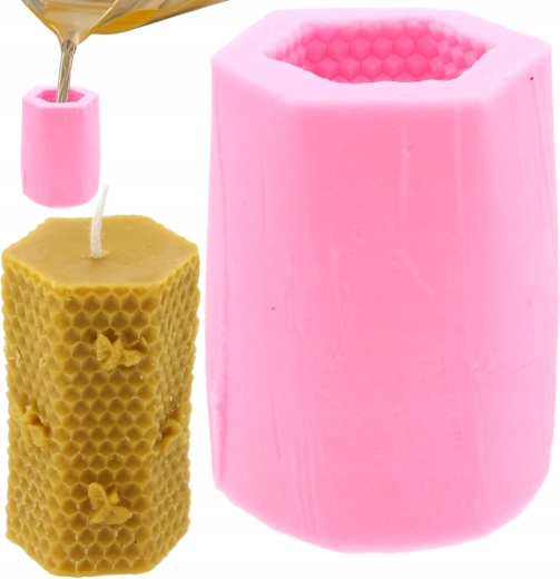Ce moule de coulée en silicone avec motif de nid d’abeille et abeille vous permet de fabriquer facilement des bougies décoratives à surface texturée rappelant les alvéoles. Grâce au silicone souple et antiadhérent, la bougie finie se démoule sans effort et le moule conserve sa forme dans le temps.