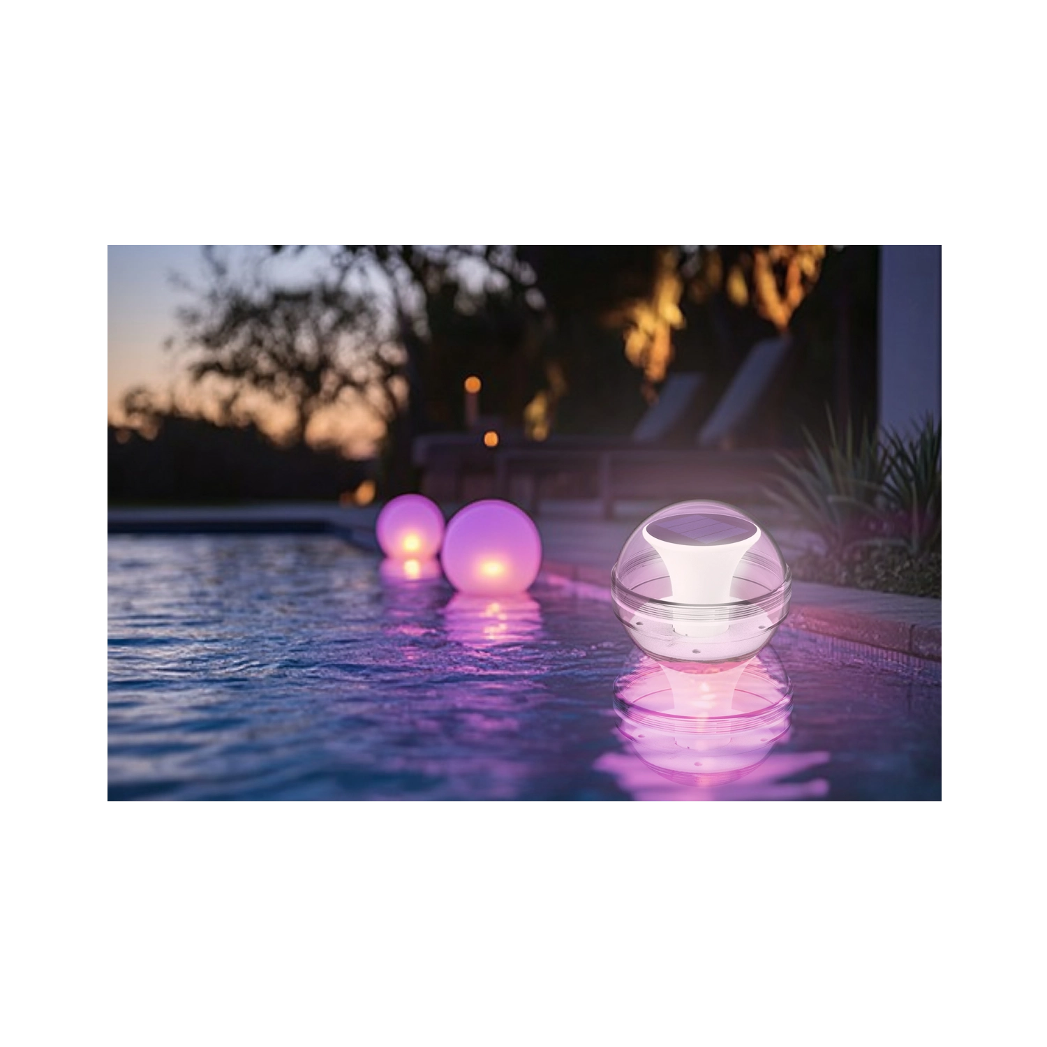 La sphère transparente est entièrement scellée et flotte en toute sécurité à la surface. La protection IP65 la protège contre la pluie et les éclaboussures – idéale pour la piscine comme pour le jardin.