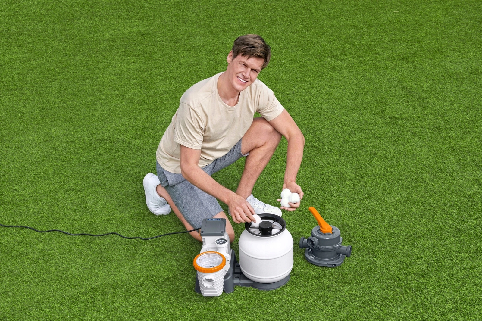 Les billes sont compatibles avec la plupart des filtres à sable et peuvent être lavées et réutilisées en machine ou à la main. Pour maintenir des performances optimales, nous recommandons de contrôler l’état du média toutes les 4 semaines environ. Grâce à leur capacité à retenir des particules jusqu’à 3 µm, la propreté et la transparence de l’eau de la piscine s’en trouvent nettement améliorées.