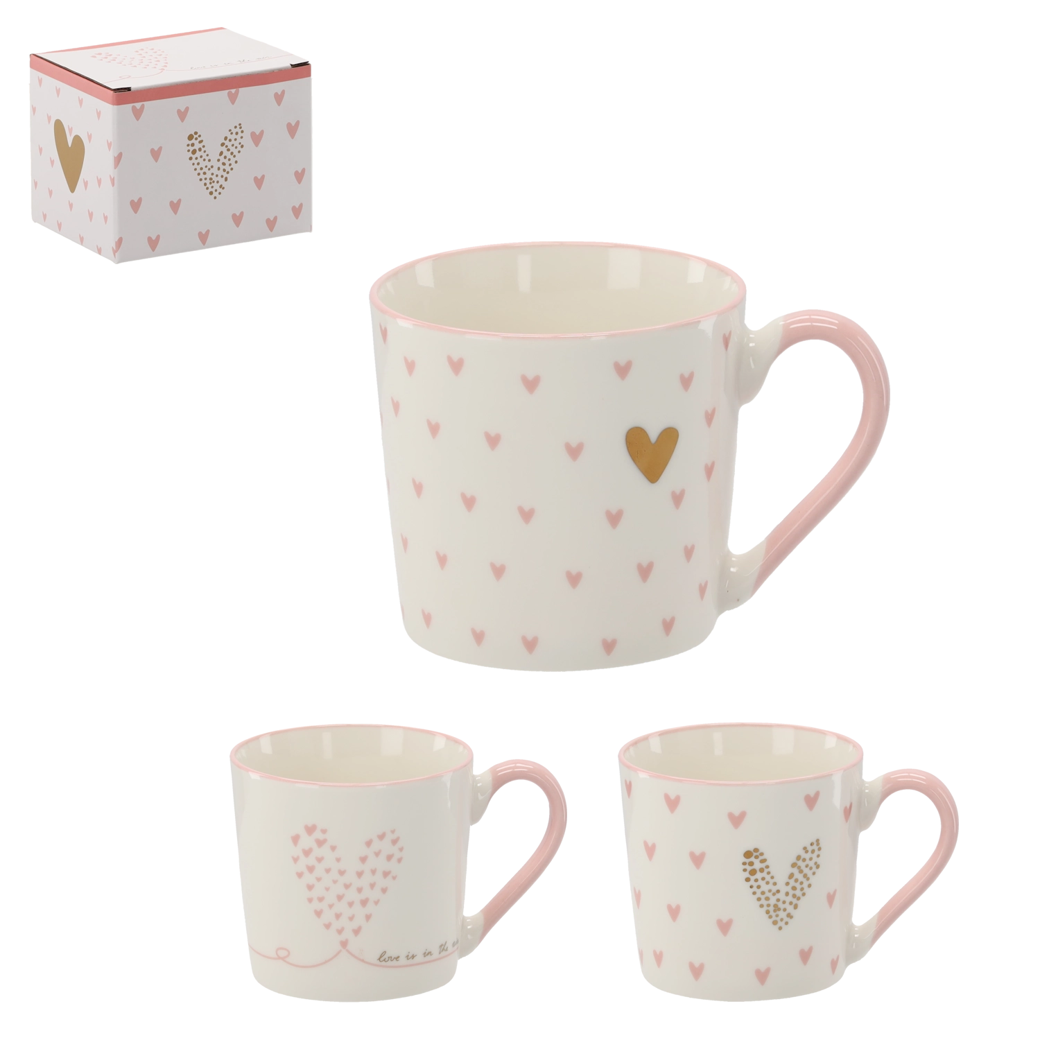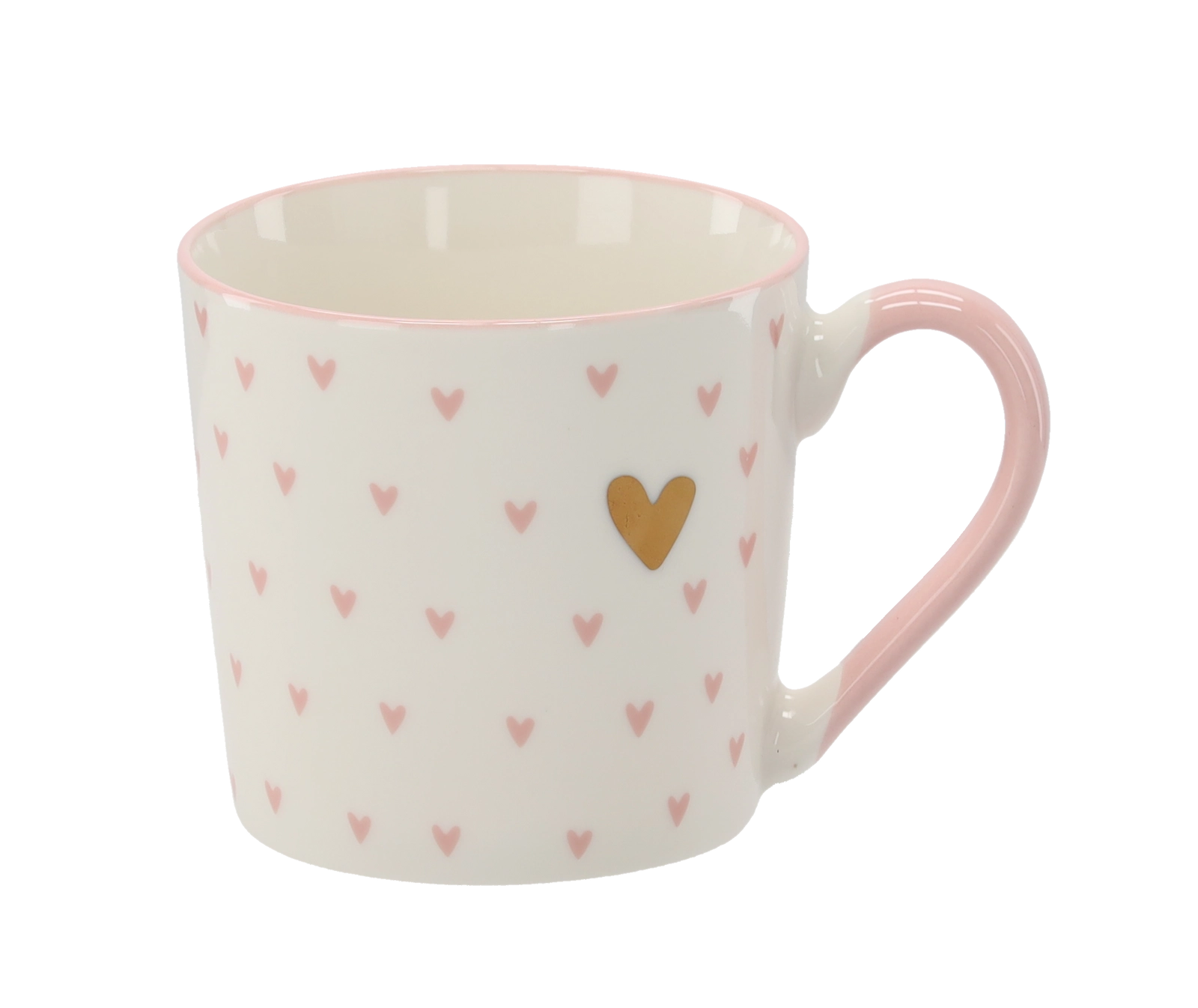 Une boîte élégante ornée de cœurs roses et dorés fait de ce mug un cadeau idéal pour toutes les occasions.