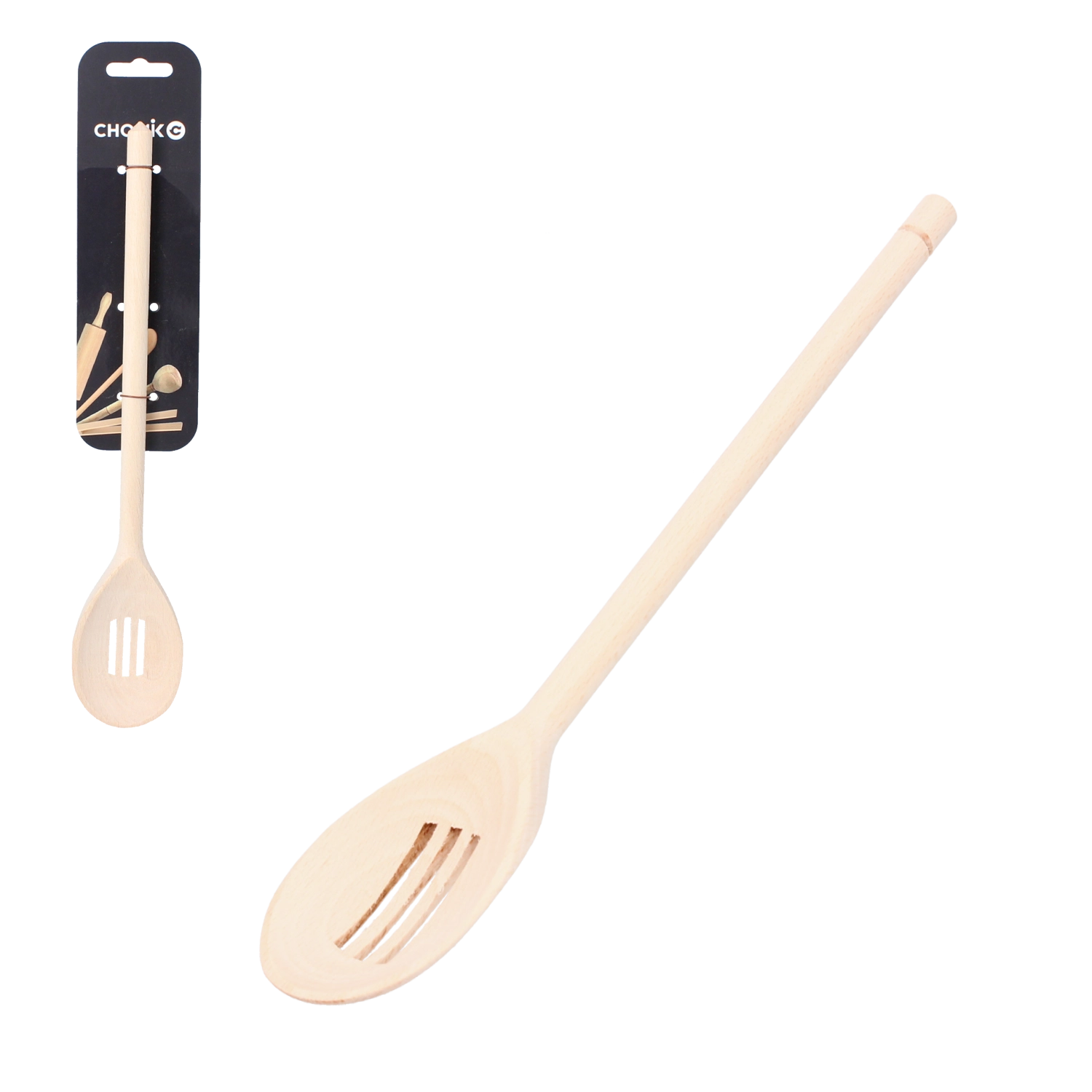 Pratique cuillère perforée de 30,5 cm, idéale pour égoutter et servir. Offre une utilisation confortable et un égouttage rapide des liquides, parfaite pour les pâtes, les légumes et les quenelles. Assistant universel pour chaque cuisine.