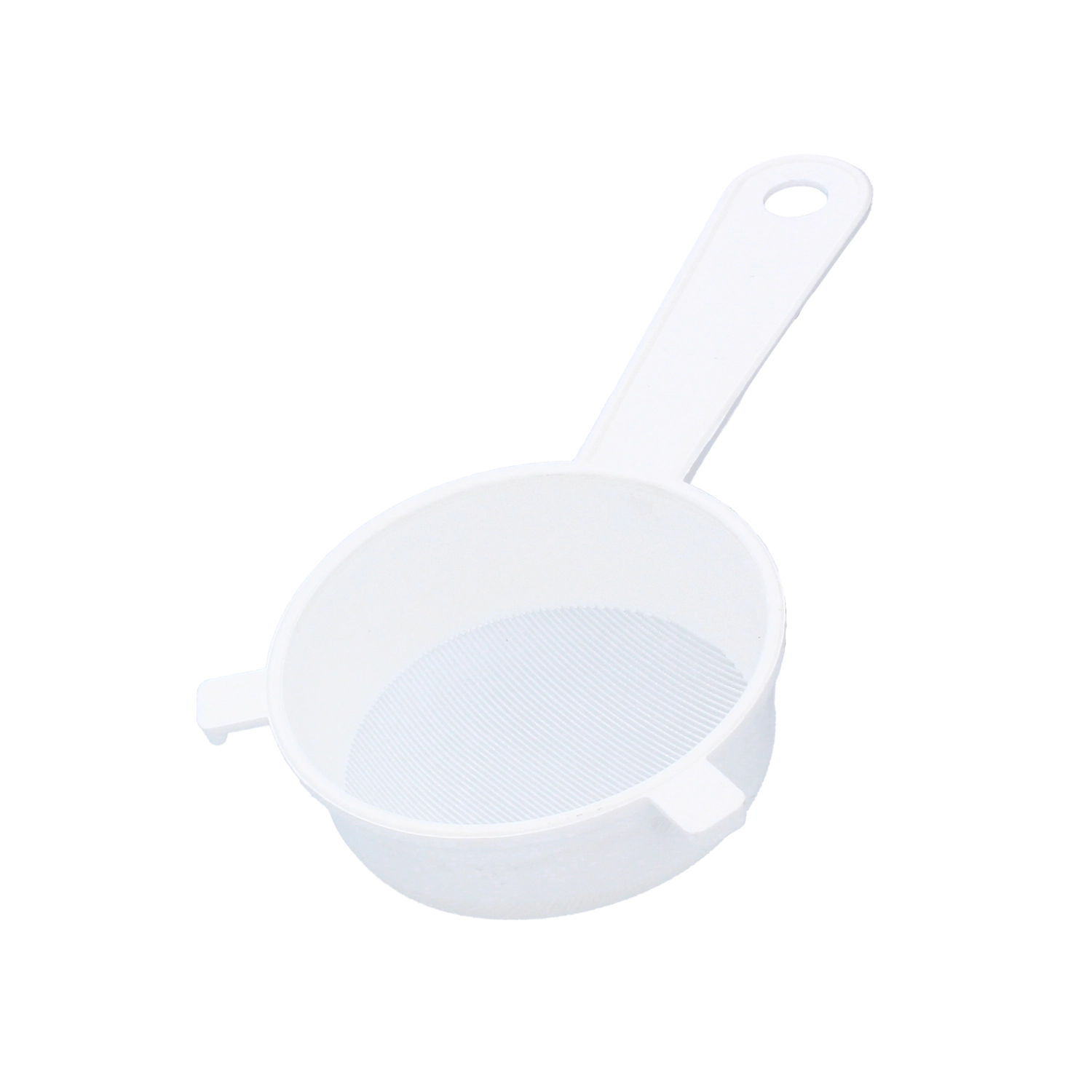 Passoire de cuisine universelle de 9 cm de diamètre avec une maille fine, idéale pour filtrer les boissons, tamisser la farine et d'autres tâches ménagères. Sa structure en plastique légère, sa poignée ergonomique avec trou de suspension et ses ergots d'appui assurent un usage pratique et rapide dans toute cuisine, que ce soit sur une casserole ou un bol.
