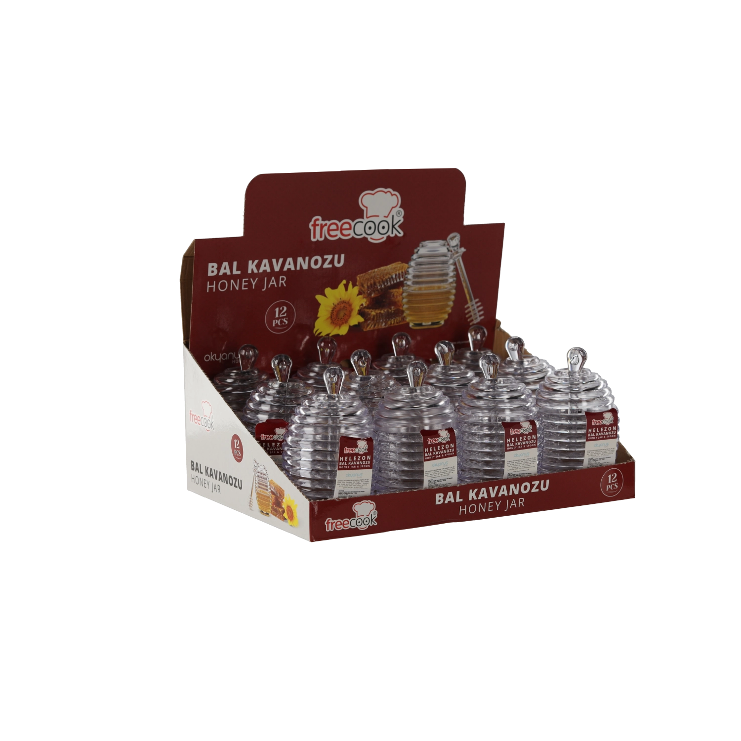 Pratique boîte en plastique pour miel d’une capacité de 200 ml, livrée avec une cuillère intégrée pour un prélèvement facile. Grâce à sa surface à relief en forme de ruche, elle est esthétique et s’intègre parfaitement à toute cuisine. Idéale pour un dosage pratique et un stockage hygiénique du miel.
