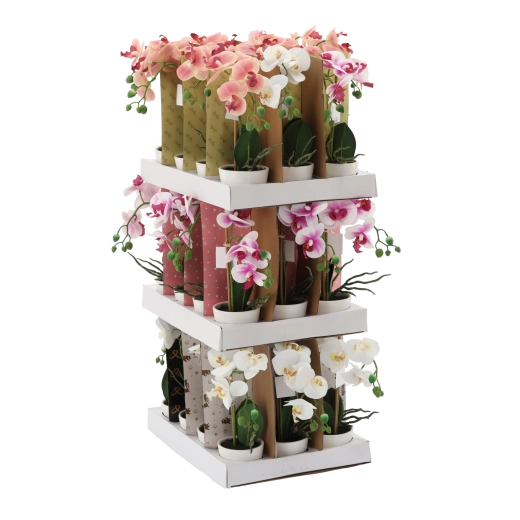 Des fleurs, des boutons et des feuilles finement travaillés créent l’apparence naturelle d’une orchidée qui conserve sa beauté toute l’année sans arrosage ni soins particuliers.