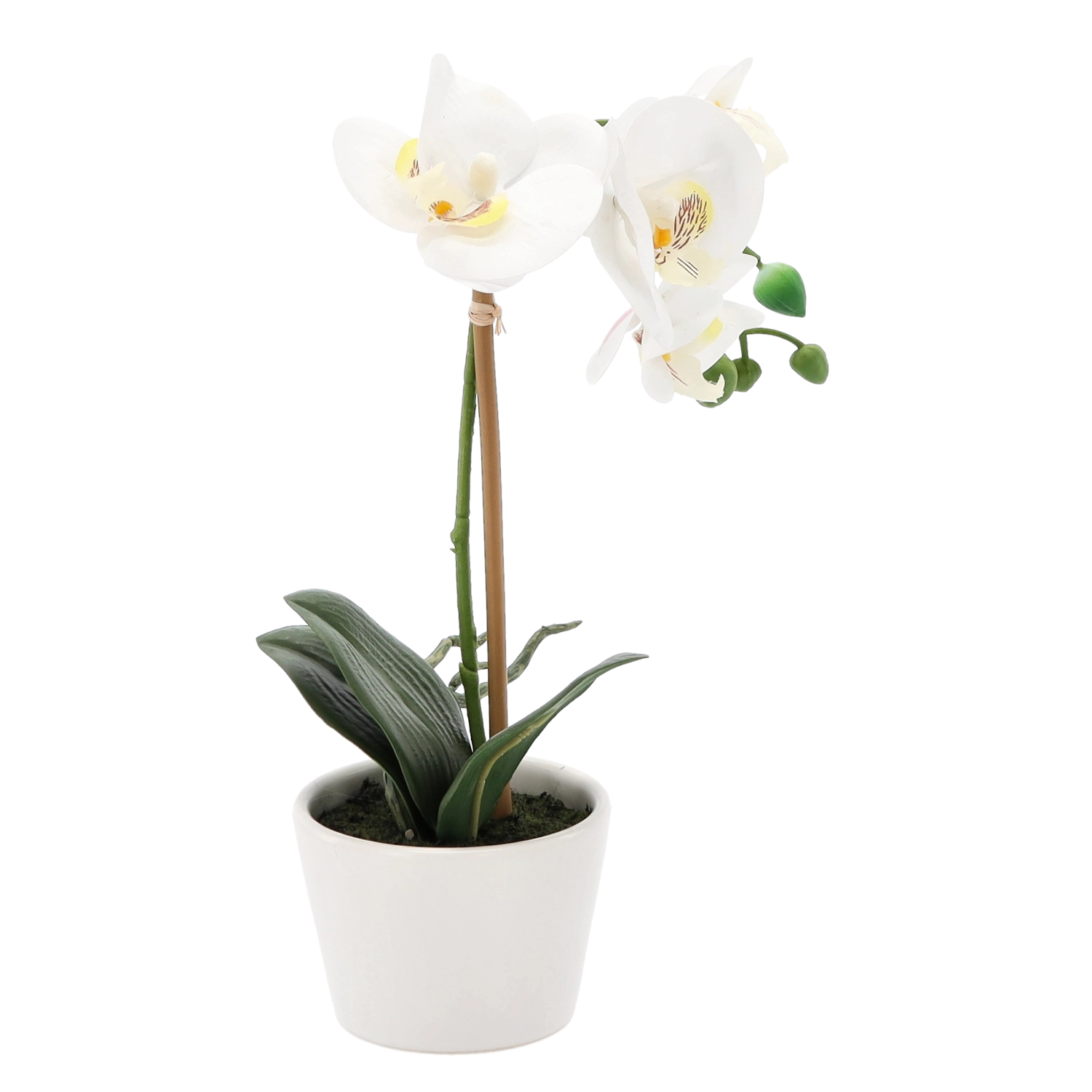 L’orchidée artificielle en pot apporte l’élégance des fleurs véritables sans les contraintes d’entretien. Des fleurs, des boutons et des feuilles réalistes offrent un rendu naturel et ajoutent une touche de couleur et d’harmonie à toute pièce. Grâce à sa taille compacte de 30 cm, elle convient à une table, une étagère ou un rebord de fenêtre.