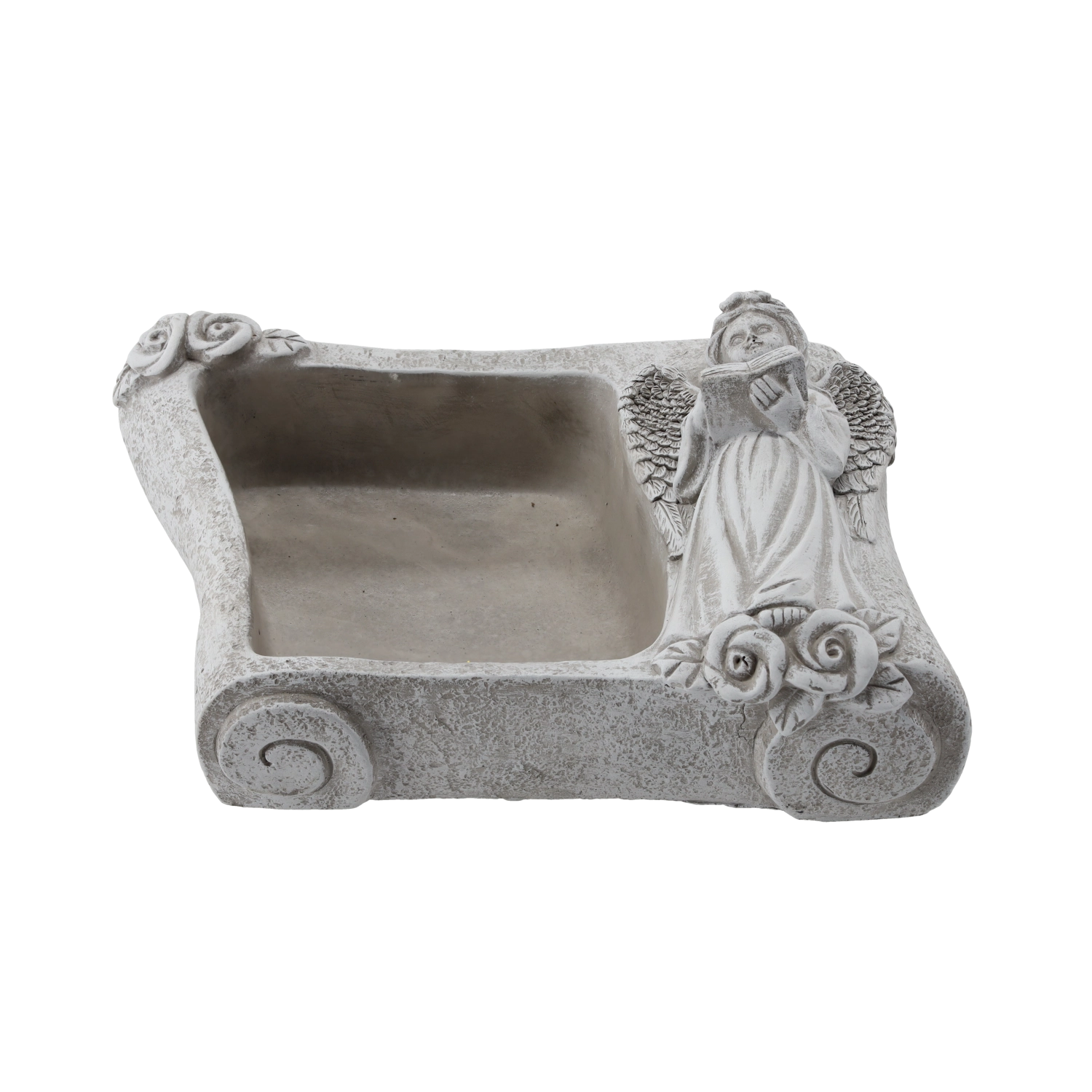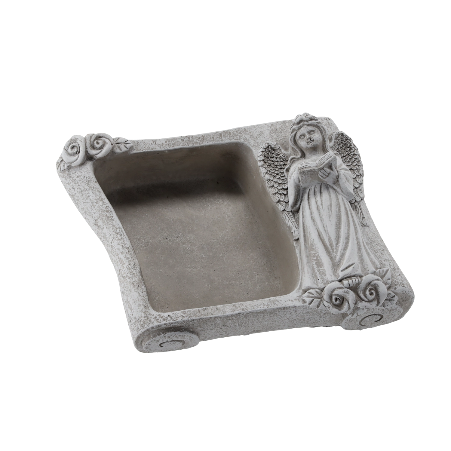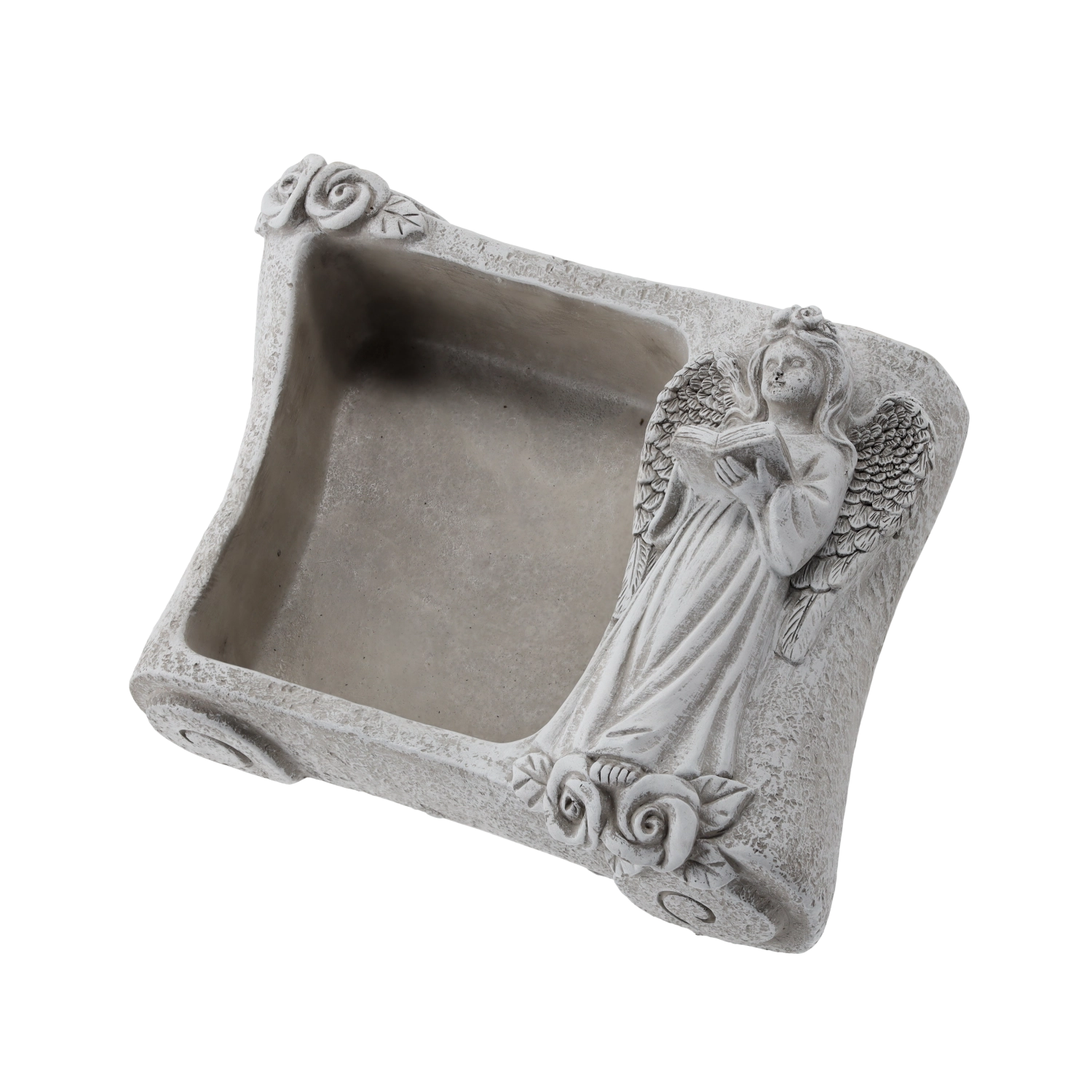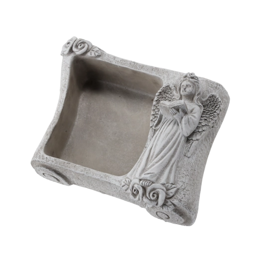 Cette coupe décorative pour fleurs, en forme de livre, séduit par sa figurine d’ange tenant un livre ouvert et par ses roses en relief aux coins. Grâce à son ciment robuste et à sa texture minérale, elle convient aussi bien à l’extérieur qu’à l’intérieur – pour des décorations de cimetière, une entrée ou comme accessoire stylé du salon.
