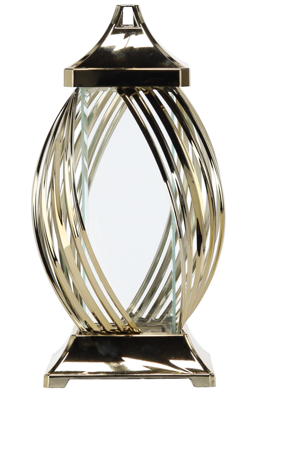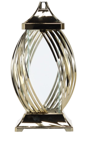 Cette lanterne décorative en métal séduit par son motif ruban moderne et sa surface métallique brillante. Les parois transparentes laissent passer la lumière d’une bougie ou d’un éclairage LED et créent une ambiance chaleureuse et élégante. La structure robuste avec base carrée assure une bonne stabilité, tandis que la poignée supérieure permet un transport ou une suspension aisés.