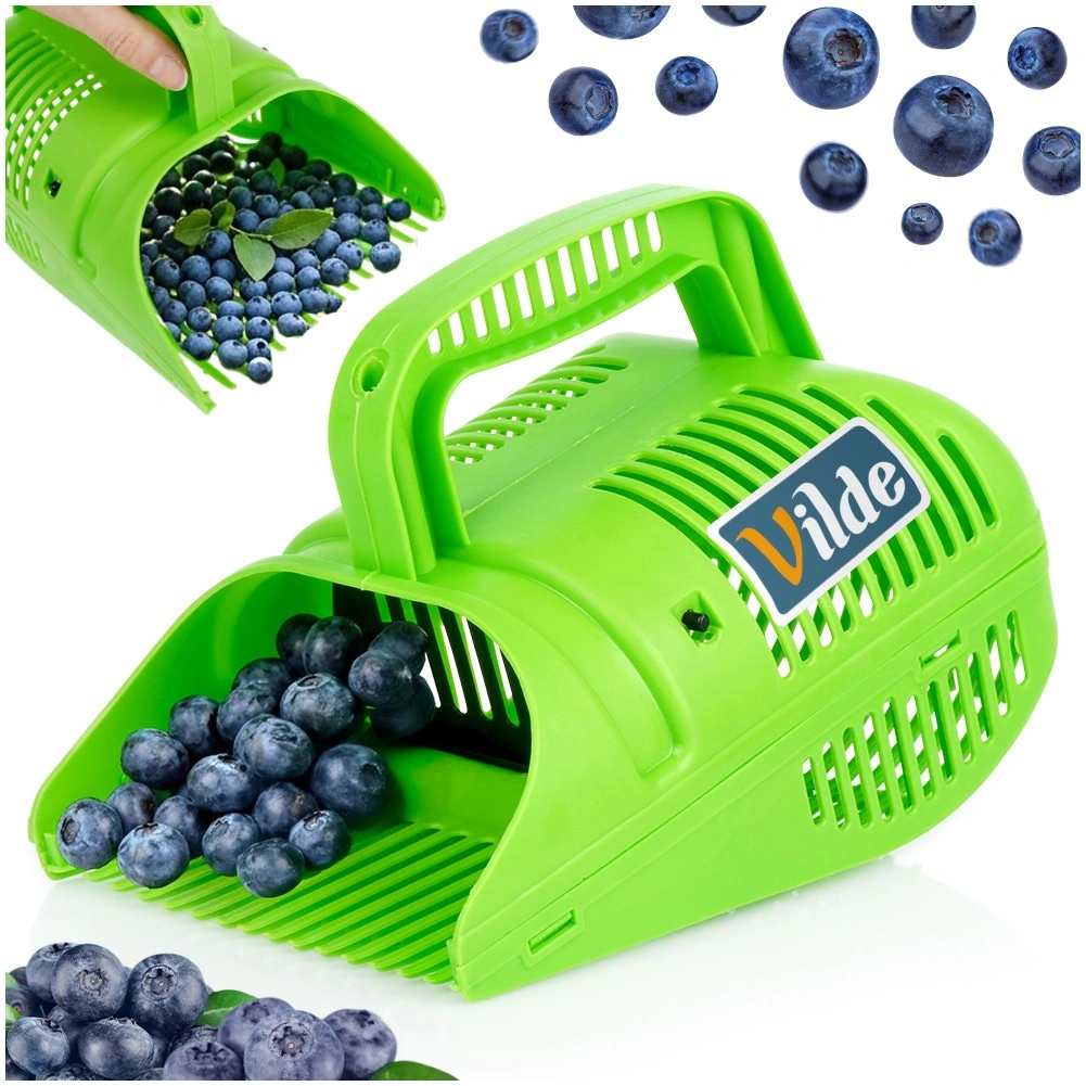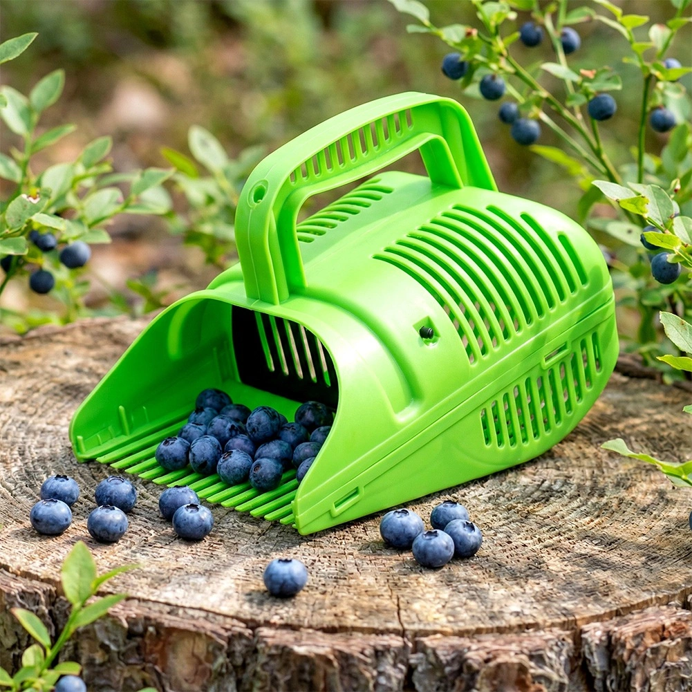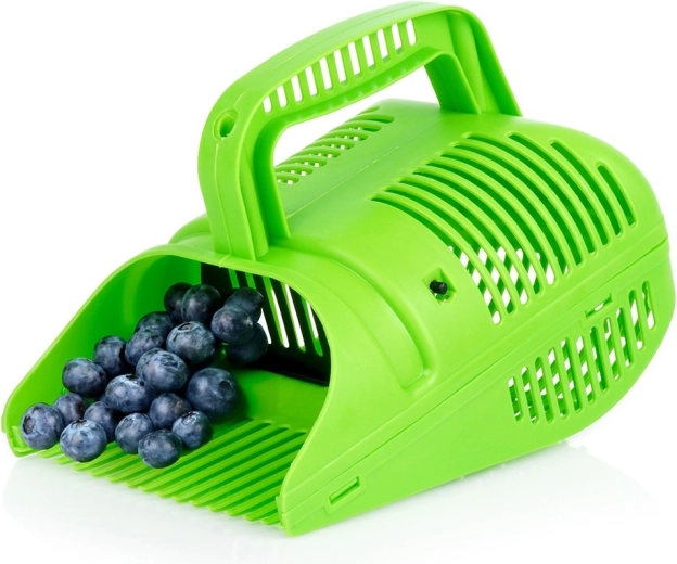 Cueilleur de baies pratique avec peigne pour une récolte rapide et délicate des petits fruits. Grâce à la prise en main ergonomique et à la conception fermée, les fruits ne tombent pas et la cueillette est rapide, confortable et propre. Fabriqué en plastique résistant de couleur verte, idéal pour myrtilles, groseilles, aronie et baies sauvages.