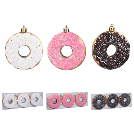 Set de 3 décorations de Noël en forme de donut 8 cm