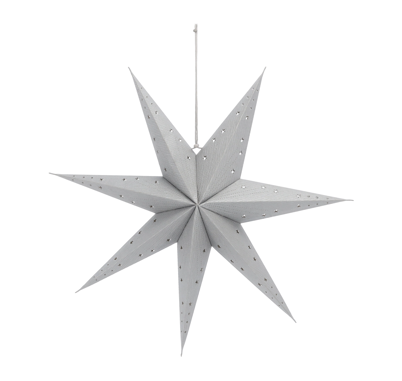 Apportez une atmosphère féerique à votre intérieur avec une élégante étoile en papier de 60 cm de diamètre en coloris gris. De fines perforations en forme de petites étoiles créent un effet lumineux magique qui réchauffe le salon, la chambre d’enfant et toute décoration saisonnière. Sa structure pliante facilite le rangement après la saison et son design léger en papier s’accorde à tous les styles d’intérieur.