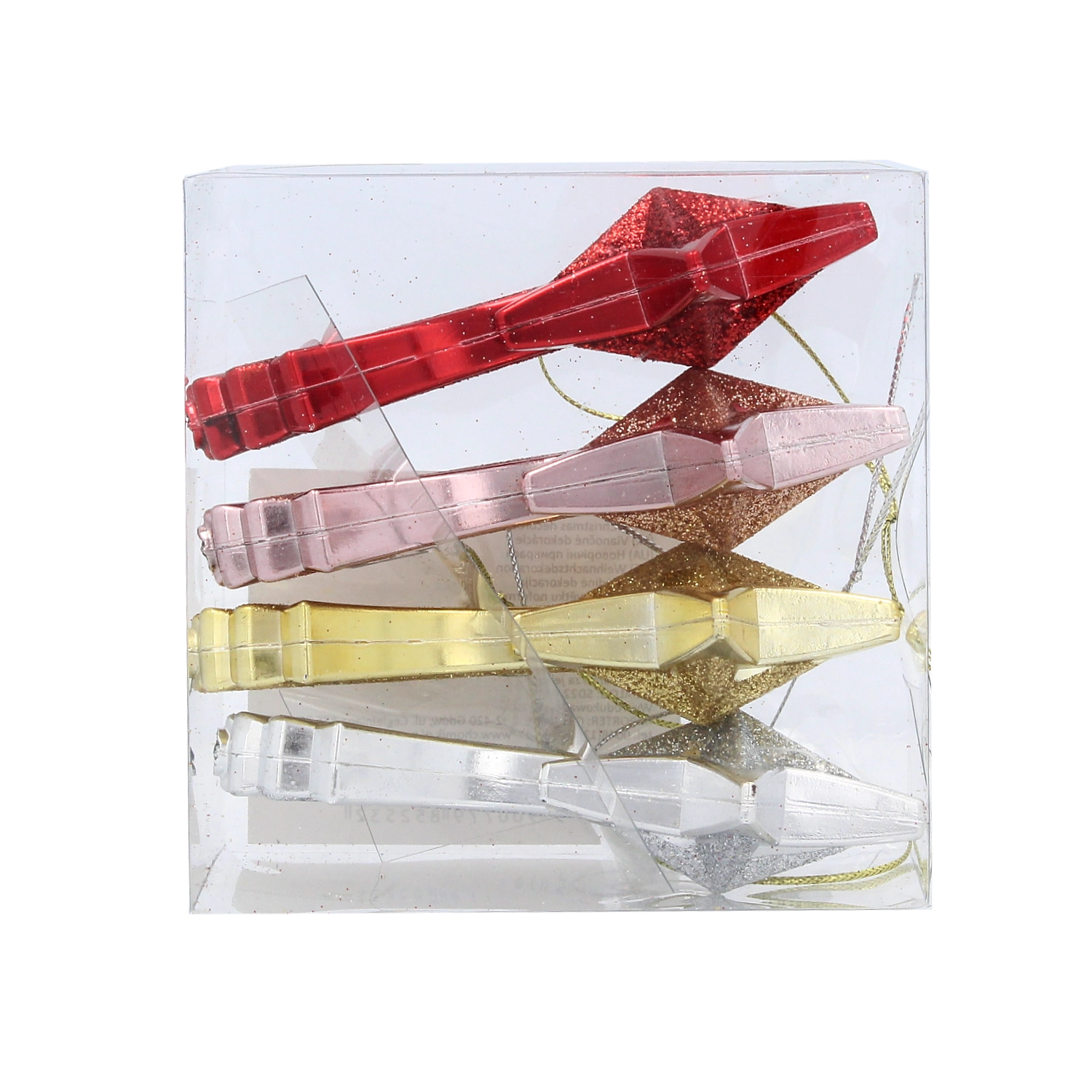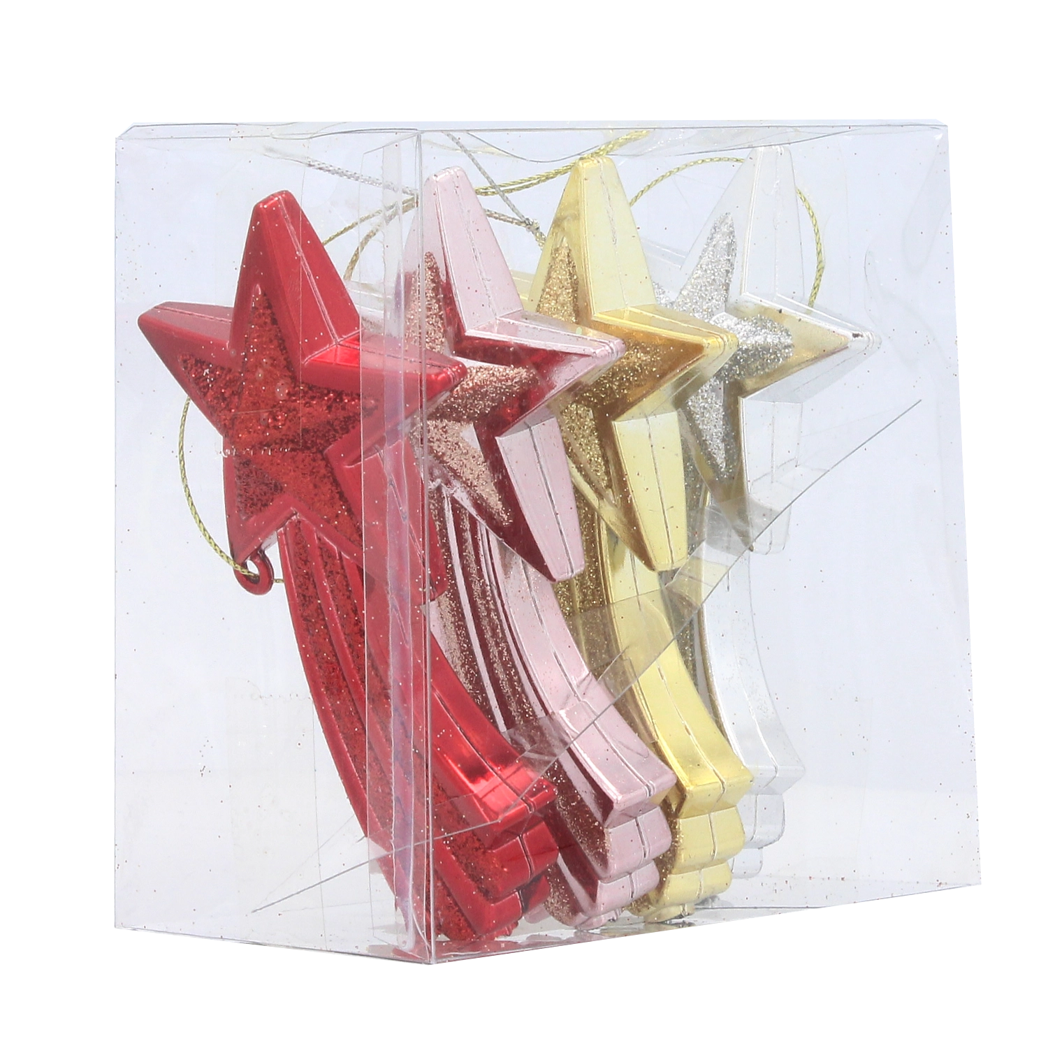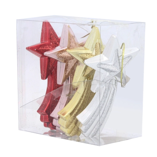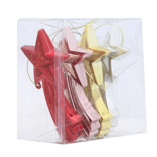 Set de décorations de Noël étoile filante 11 cm – rouge, or, argent et rose