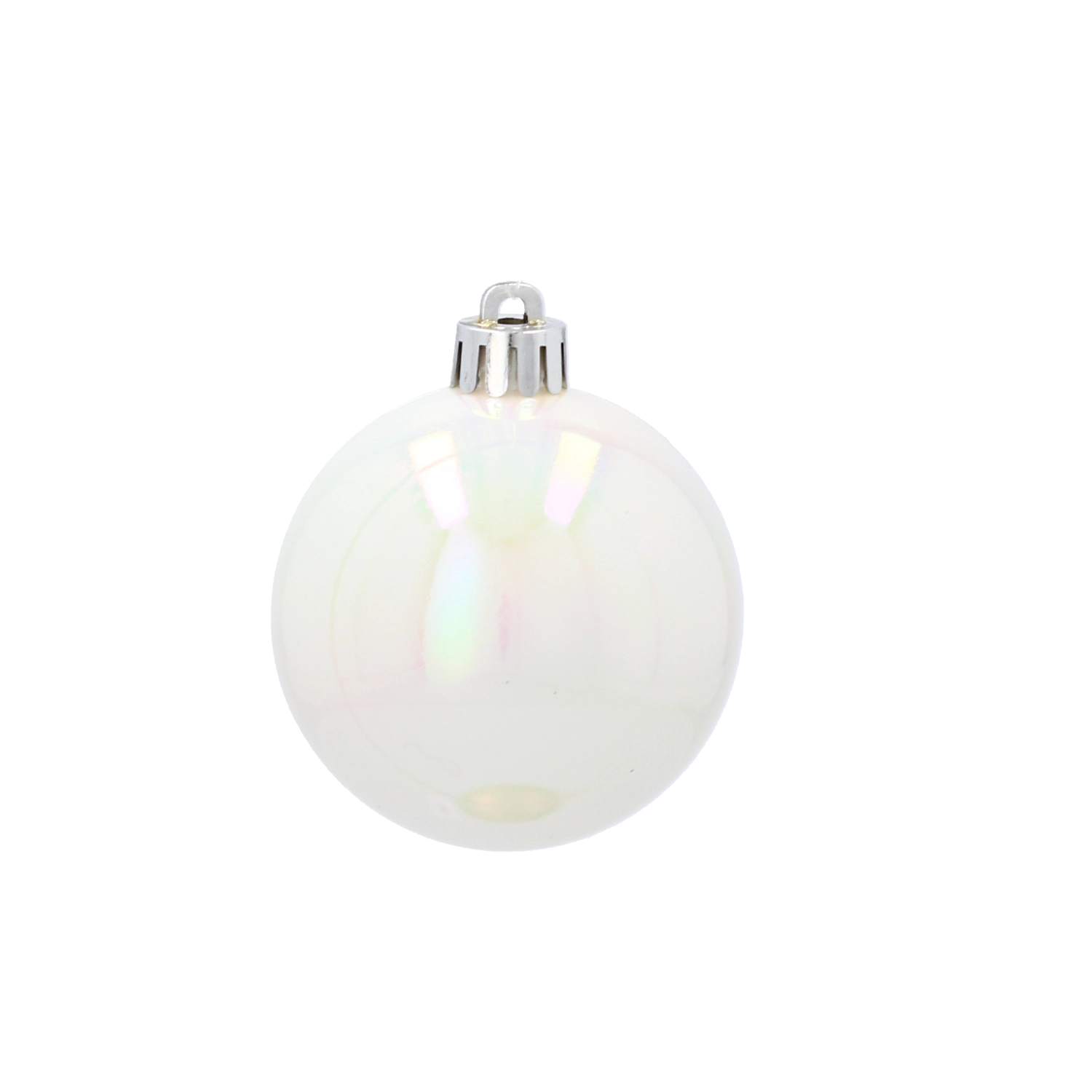 La nacre irisée reflète la lumière avec une brillance délicate, tandis que le motif facetté ajoute profondeur et étincelle à la décoration festive.