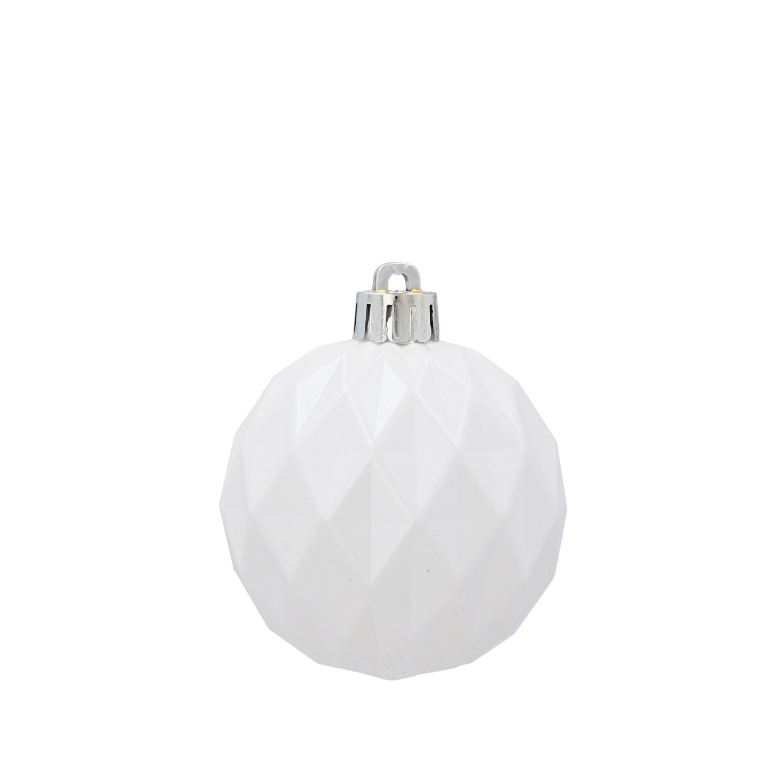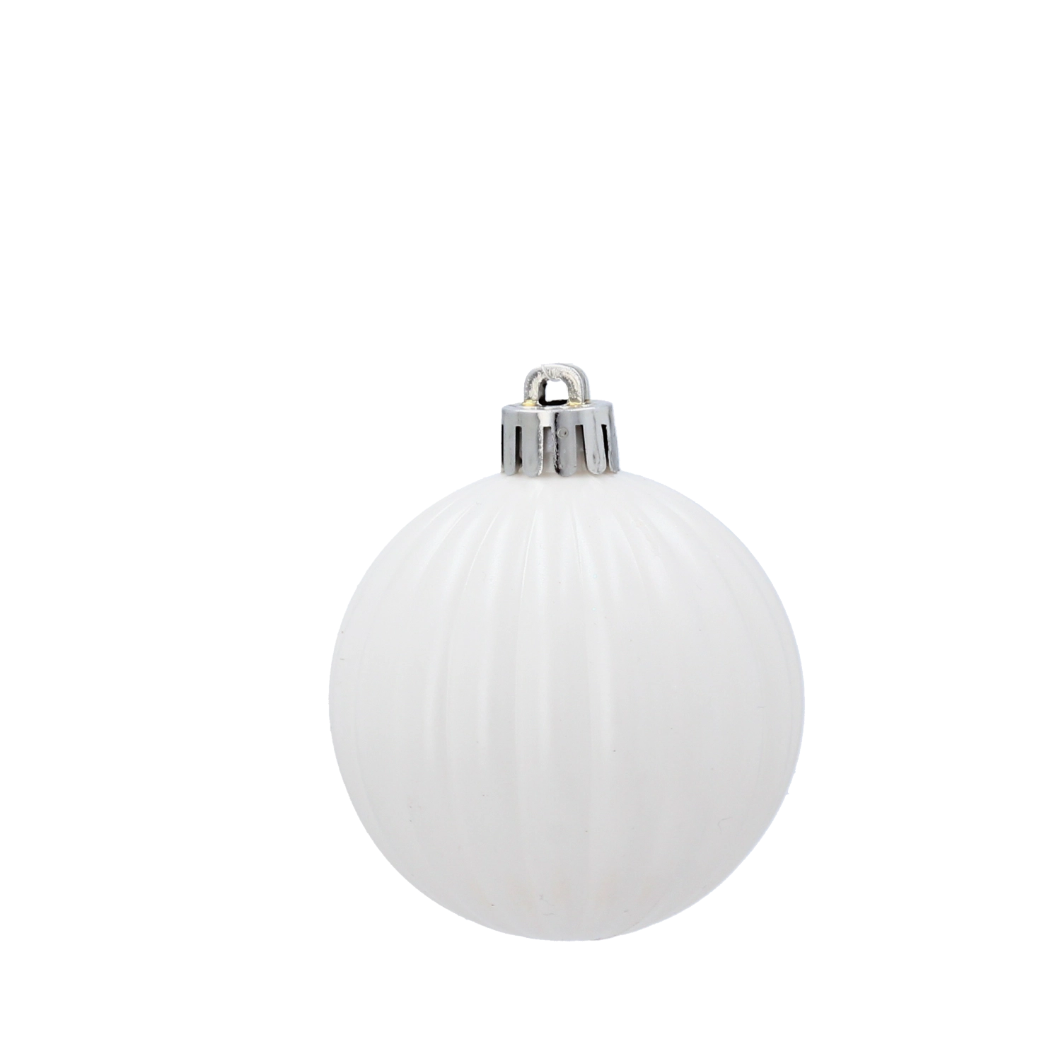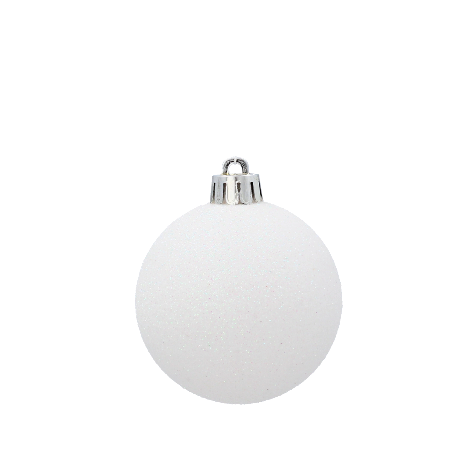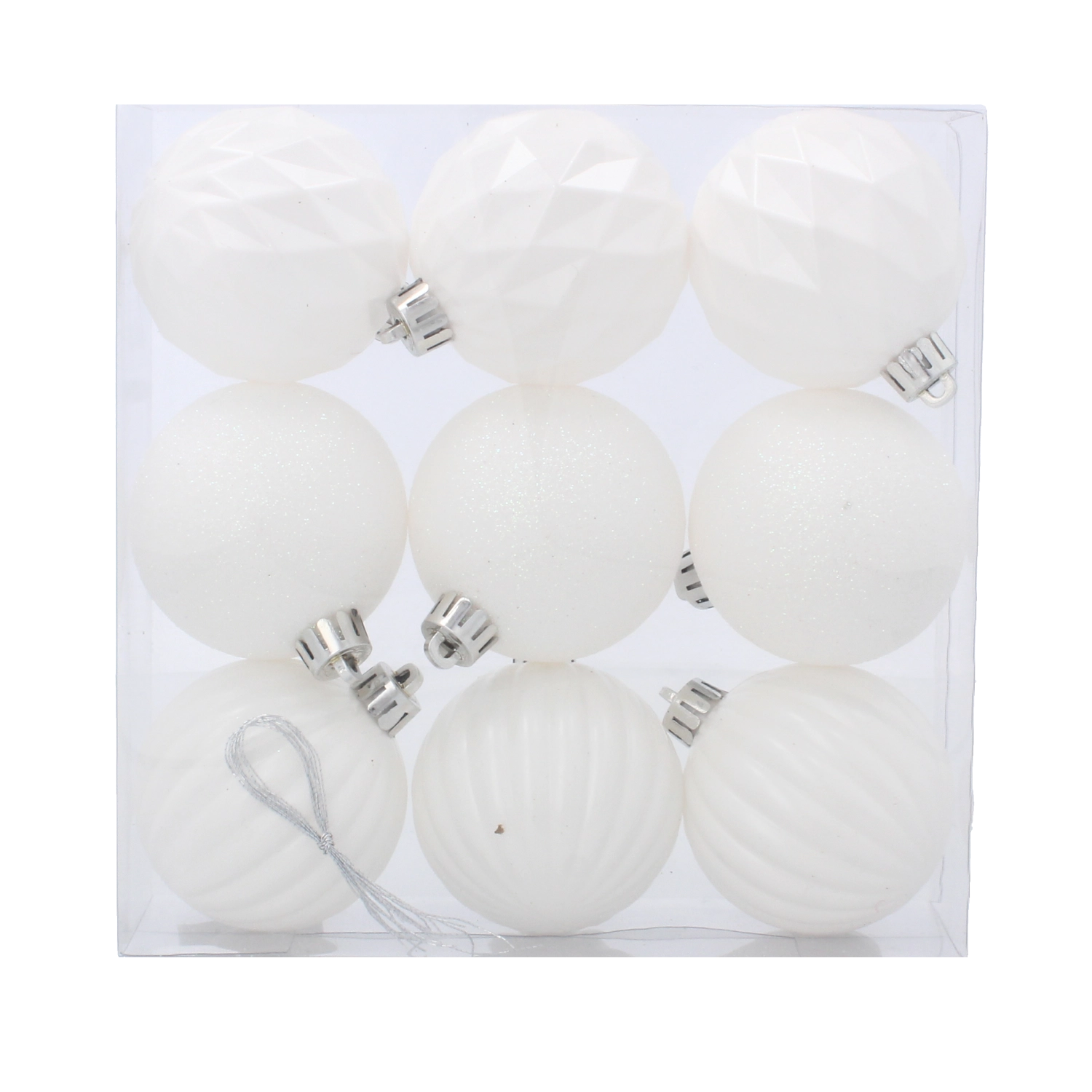 Élégant set de neuf boules de Noël blanches de 6 cm de diamètre qui apporte une touche festive à votre sapin et à votre intérieur. La combinaison de finitions mates, brillantes et pailletées crée un ensemble harmonieux, facile à assortir avec vos autres décorations. Le plastique léger et résistant garantit une utilisation sécurisée et incassable dans les foyers avec enfants et animaux de compagnie.