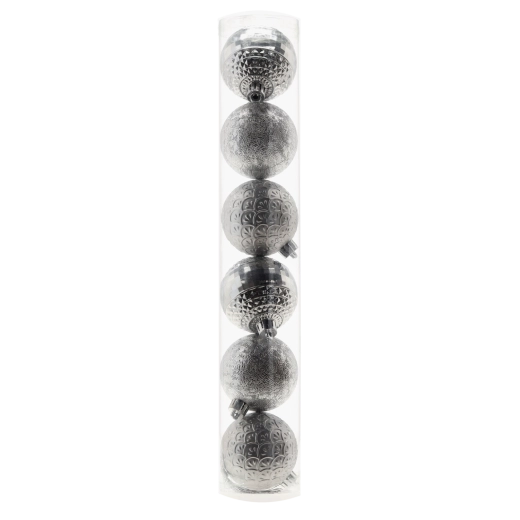 Les boules argentées aux finitions lisses et pailletées offrent un effet moderne et scintillant, reflétant à merveille la lumière des guirlandes de Noël.