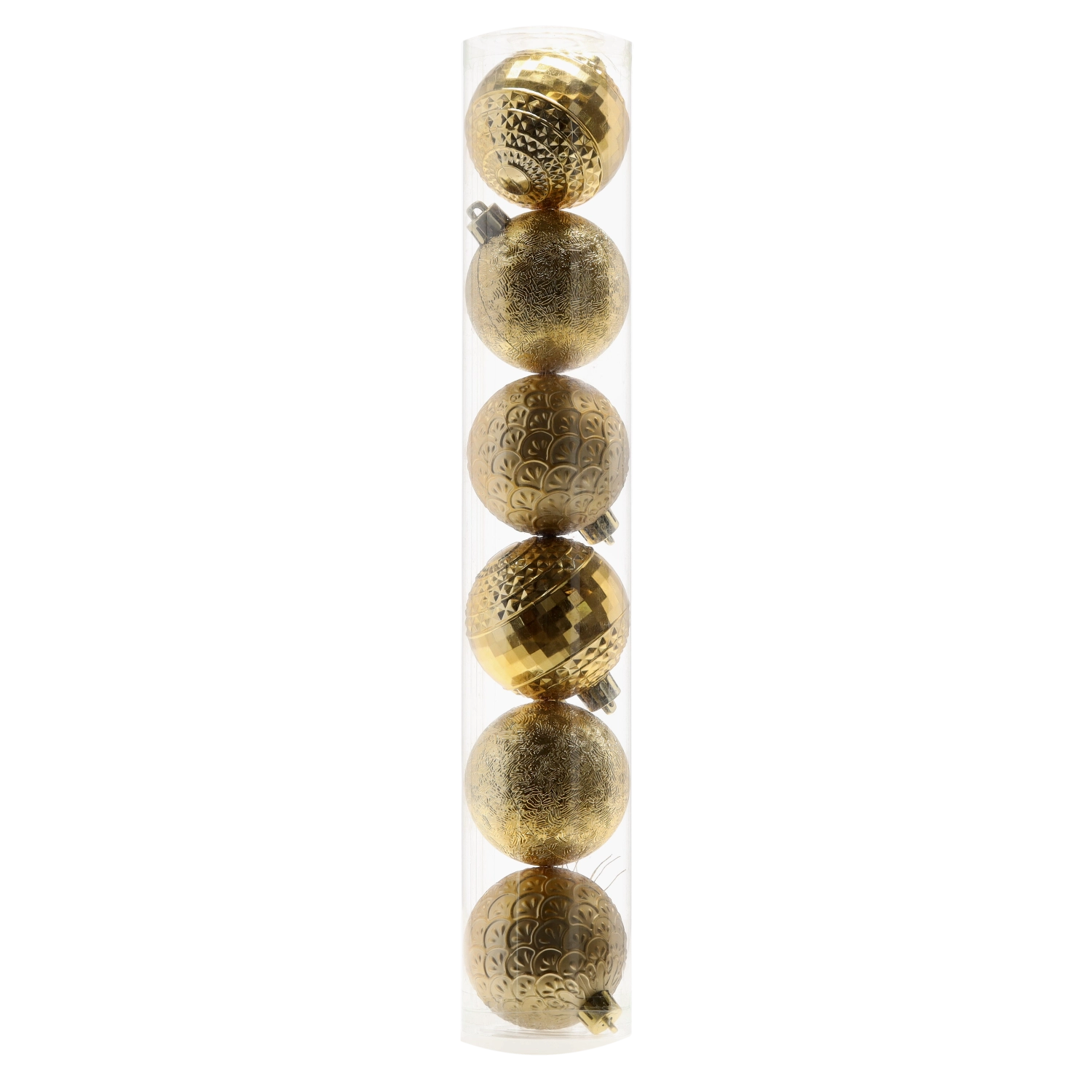 Les boules sont fournies dans un tube transparent qui les protège pendant le rangement et le transport. Le paquet comprend de fines ficelles dorées ou argentées pour une suspension immédiate. Utilisez-les non seulement sur le sapin de Noël, mais aussi sur les couronnes, guirlandes ou compositions festives.