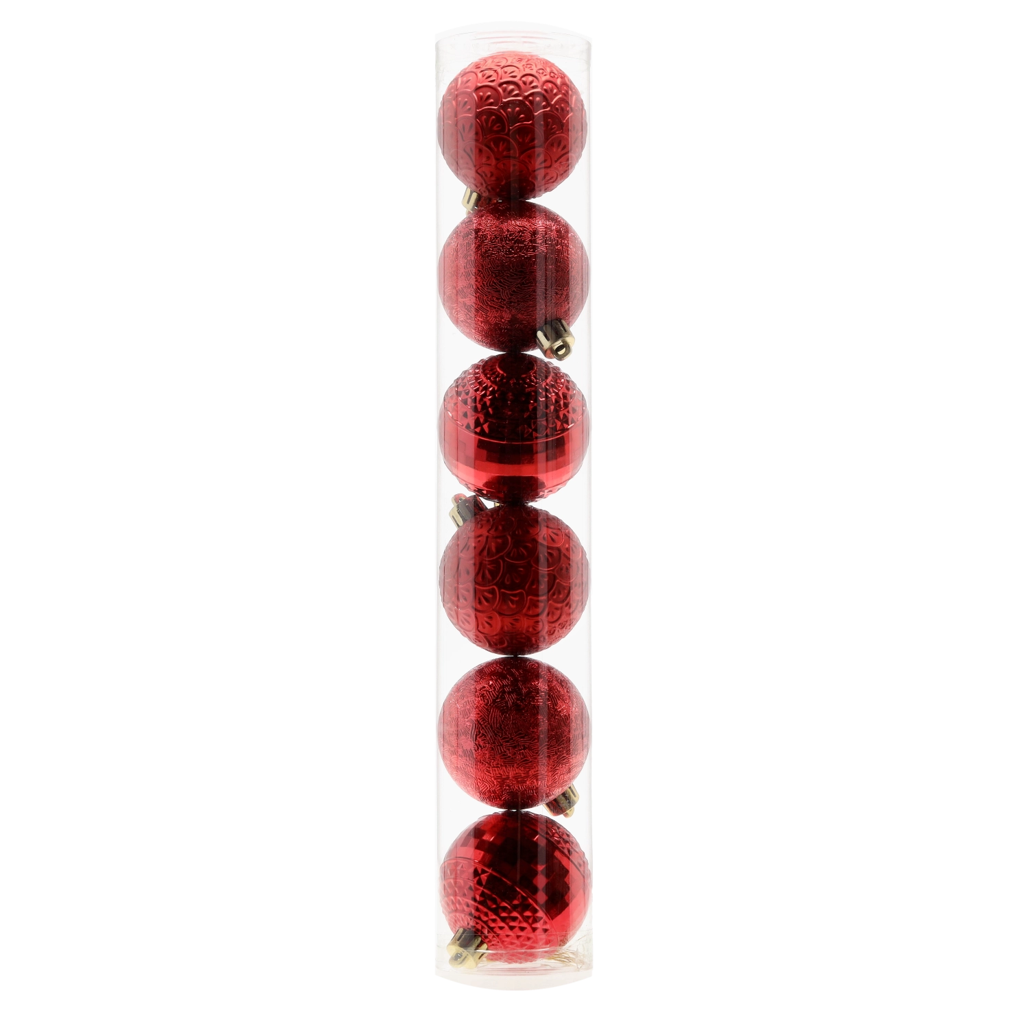 Des boules rouge intense aux finitions brillantes et texturées soulignent l’ambiance classique des fêtes. Grâce aux capuchons de suspension dorés, vous les accrocherez en un rien de temps.
