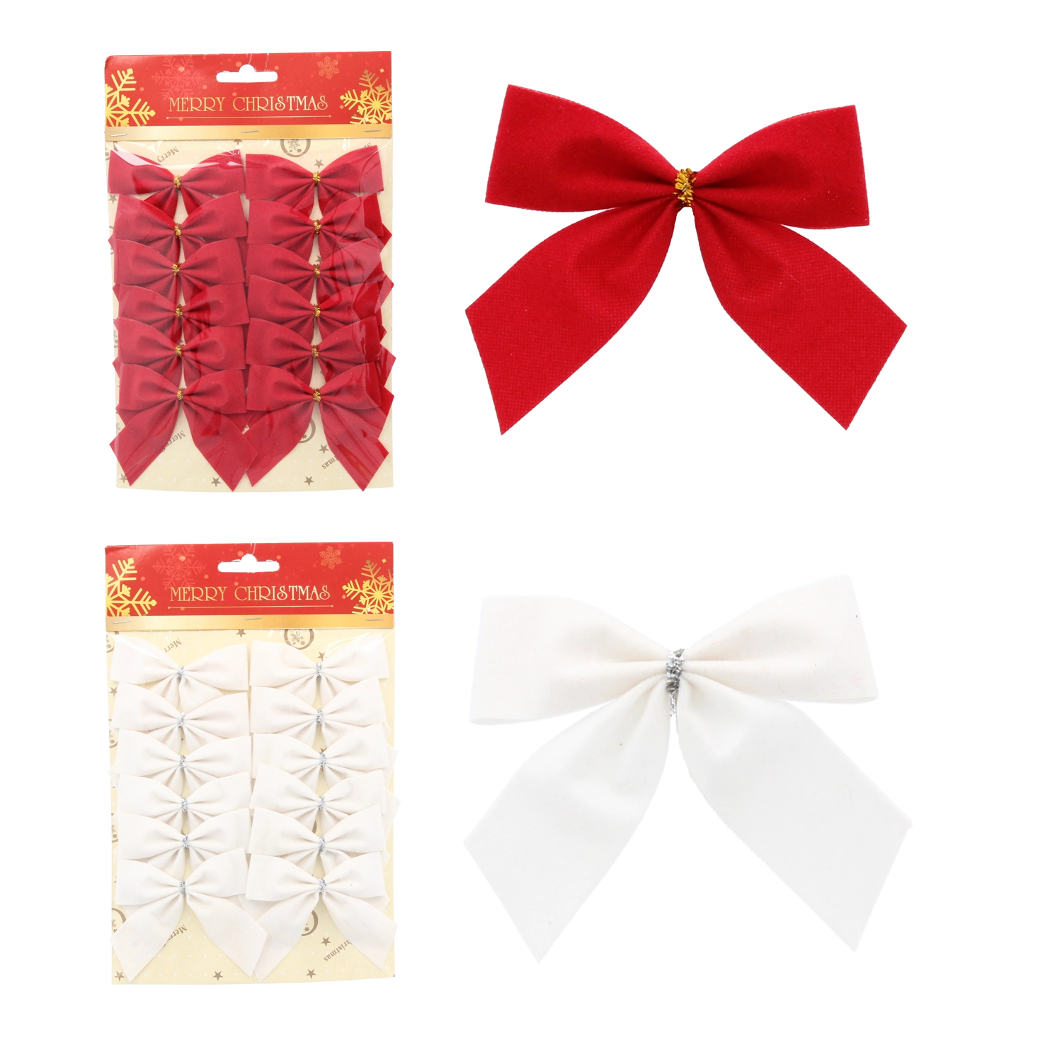 Apportez du style à vos compositions festives avec ce lot polyvalent de nœuds. L’association du rouge et du blanc classiques s’accorde parfaitement à différents styles de décoration, tandis que la texture veloutée crée un aspect élégant et chaleureux. Grâce à leurs dimensions compactes 8×6 cm, ces nœuds sont idéaux pour les petites branches, les paquets cadeaux et les décorations de l’Avent.