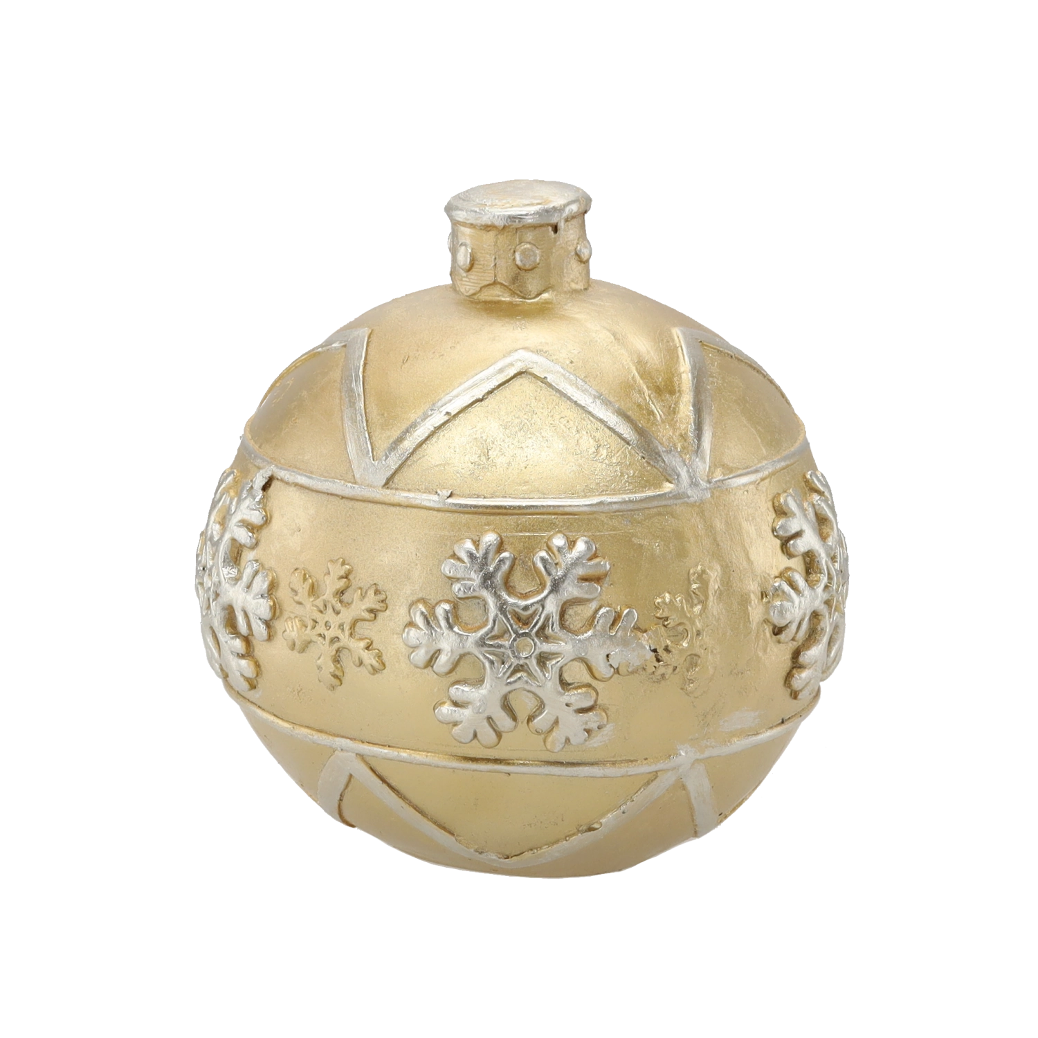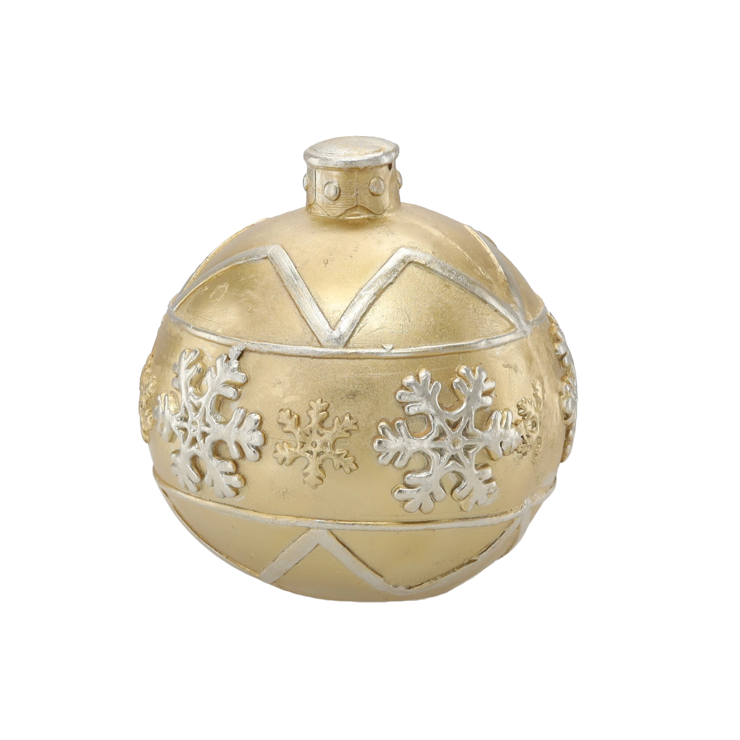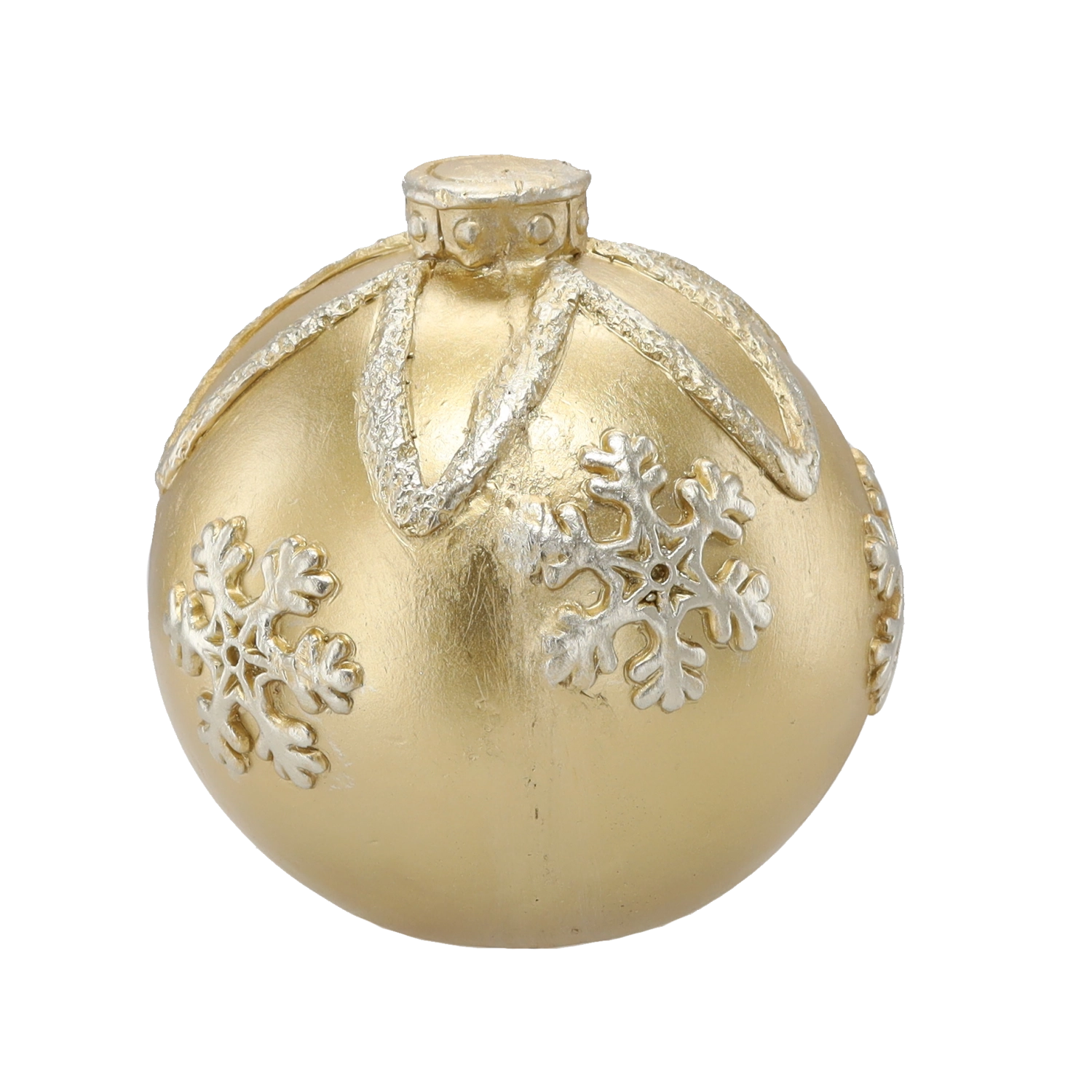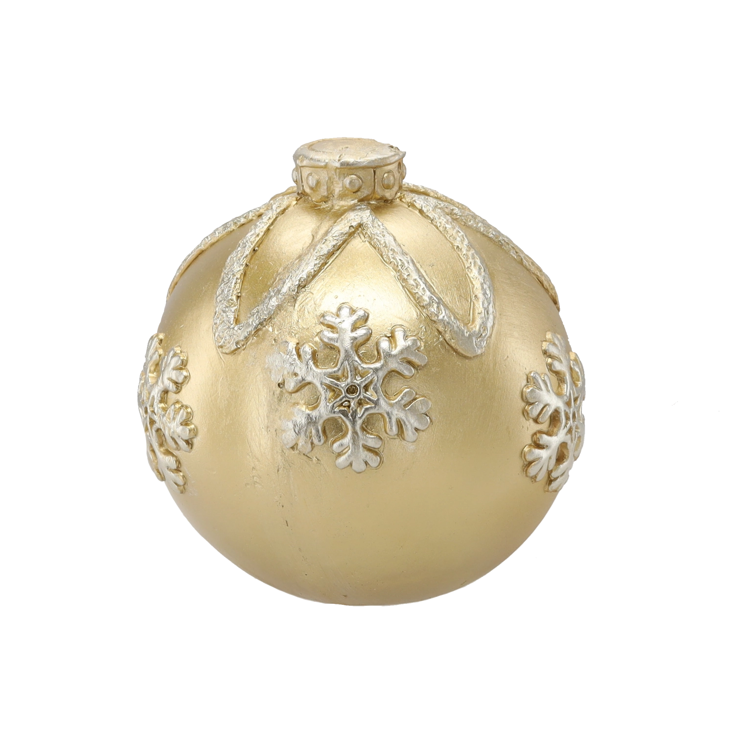 Élégante boule de Noël dorée d’un diamètre de 21,5 cm qui apporte à votre intérieur une atmosphère festive. Sa surface brillante et ses motifs de flocons de neige en relief en font une décoration marquante pour les grands sapins de Noël comme pour des compositions autonomes. Fabriquée en matériau de qualité, résistant pour une longue durée de vie.