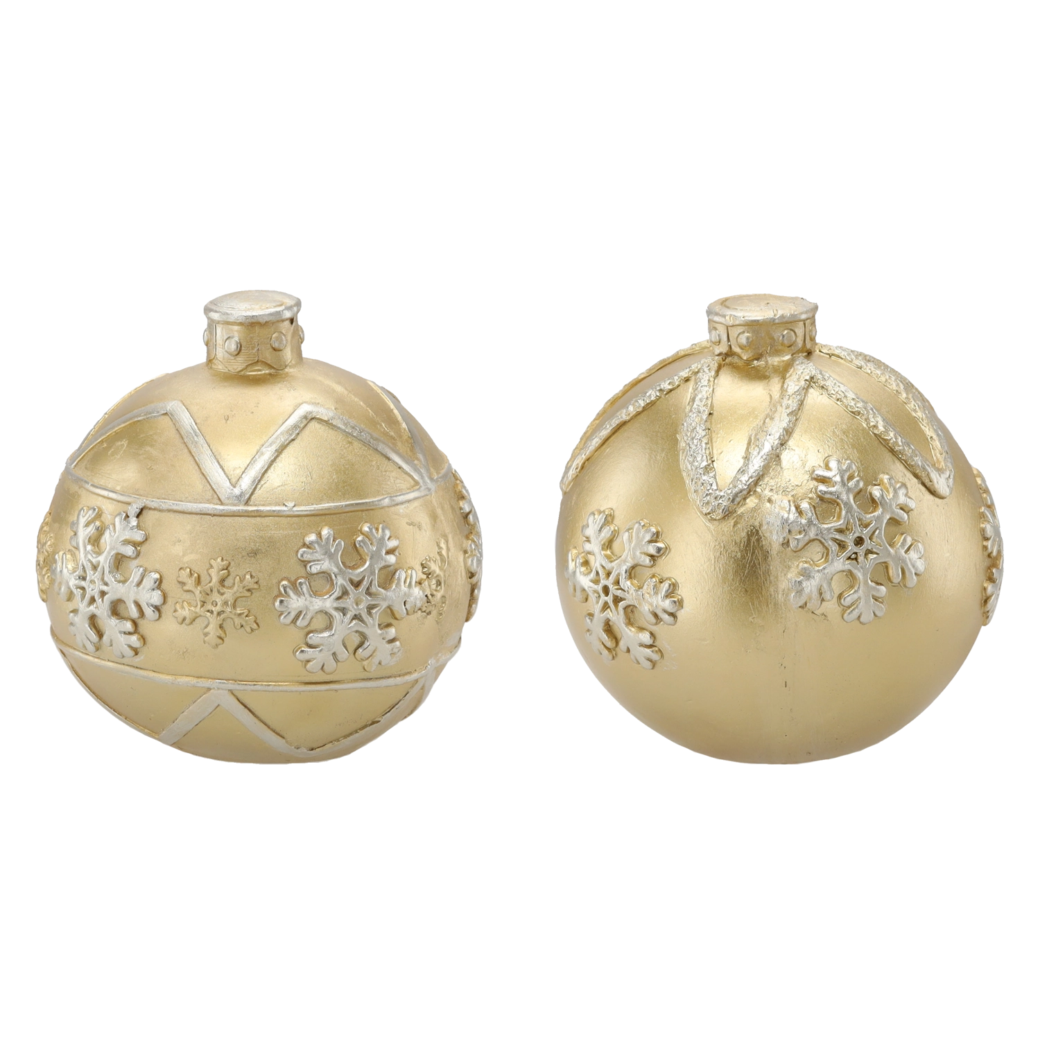 La surface métallisée avec flocons de neige accentués et bandes géométriques apporte de la profondeur et des reflets élégants à la décoration.