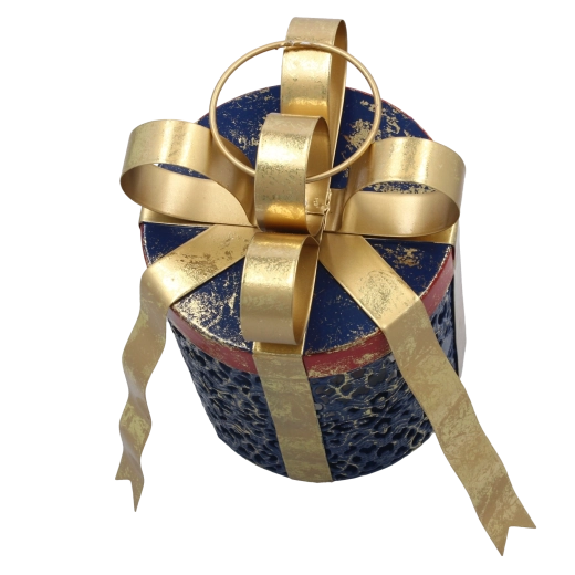 Apportez la magie de Noël chez vous avec cette élégante décoration en forme de cadeau dotée d’un éclairage LED chaud. Son corps métallique bleu profond, travaillé avec précision, est rehaussé d’un nœud doré brillant au rendu luxueux et intemporel. Grâce à l’alimentation par piles, vous pouvez l’installer partout sans câbles – sur une commode, une table ou un rebord de fenêtre.