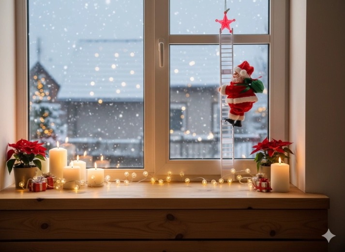 • Décoration animée : Saint‑Nicolas se déplace en douceur le long de l’échelle.