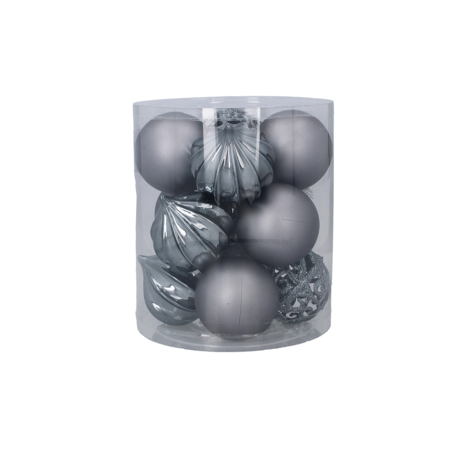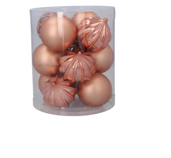 Élégant set de 12 boules de Noël de 6 cm de diamètre en combinaison de couleurs olive, cuivre et graphite, offrant à votre sapin un look moderne et sophistiqué. Les décorations sont en plastique résistant, elles ne se cassent donc pas facilement, et grâce au tube transparent, vous les rangez aisément pendant toute la période des fêtes et hors saison.