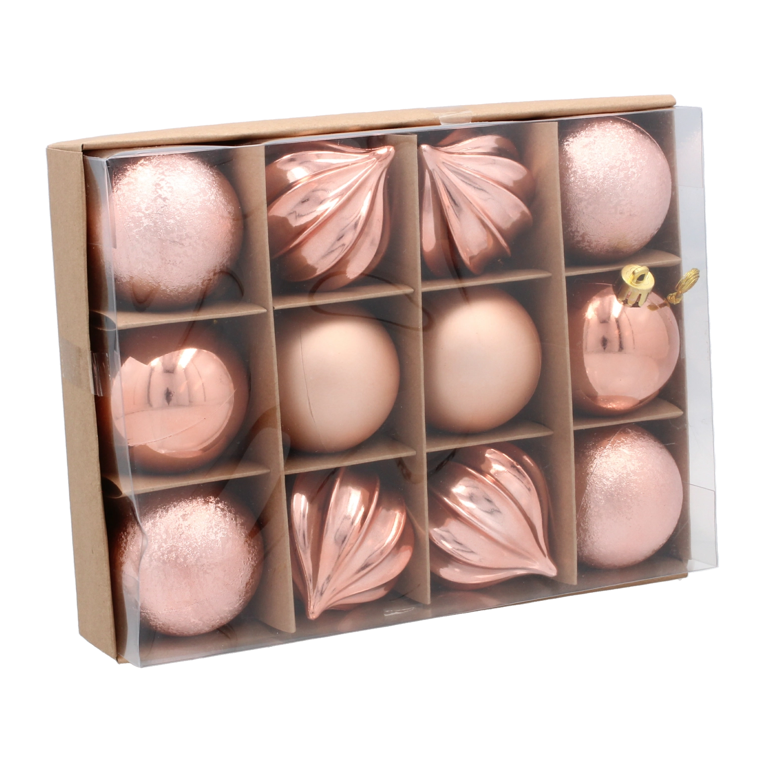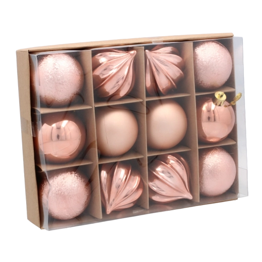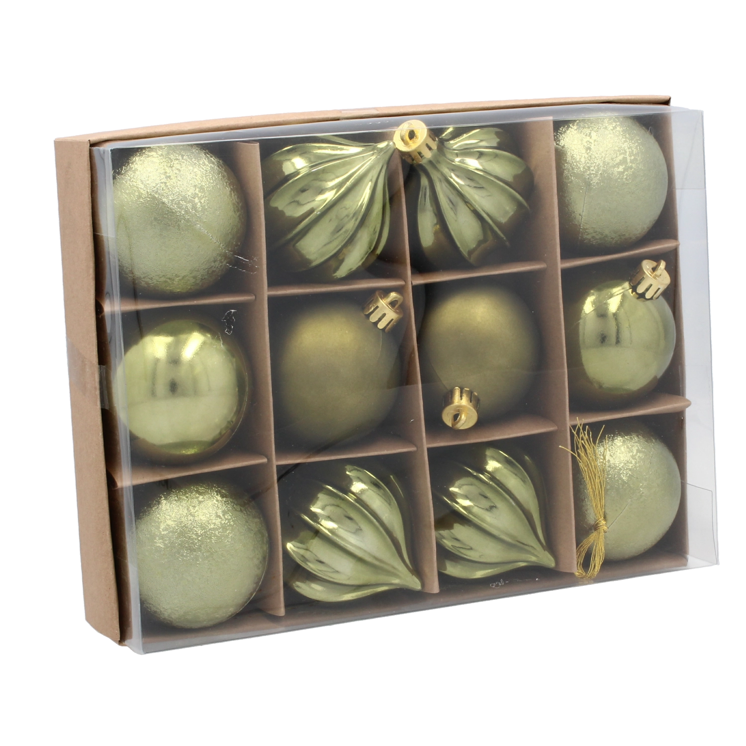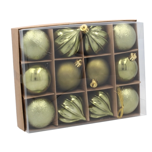 Set de boules de Noël 6 cm – olive, cuivré et graphite, 12 pcs