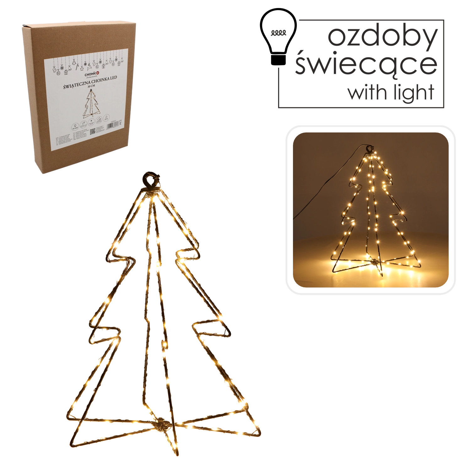 Réchauffez vos soirées d’hiver avec une élégante décoration de Noël – un sapin métallique de 30 cm doté de 95 LED blanc chaud. Grâce à l’alimentation par piles 3× AA et à ses dimensions compactes, vous pouvez l’installer partout sans câbles. La norme IP44 garantit une utilisation sûre en intérieur et dans les espaces extérieurs couverts. Idéal pour la table, la commode ou l’appui de fenêtre.
