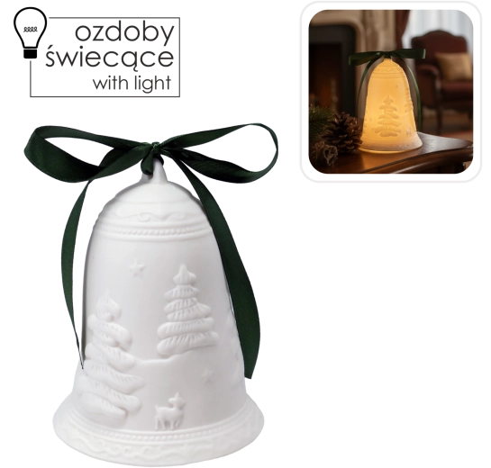 Une élégante clochette en céramique avec éclairage LED apporte à votre intérieur une magique ambiance de Noël. Grâce à sa lumière chaude et douce, elle est idéale pour suspendre au sapin, poser sur la table ou intégrer à votre décoration de fête. La céramique mate avec des motifs en relief de sapins et d’étoiles diffuse une agréable lumière d’ambiance pour de douillettes soirées d’hiver.