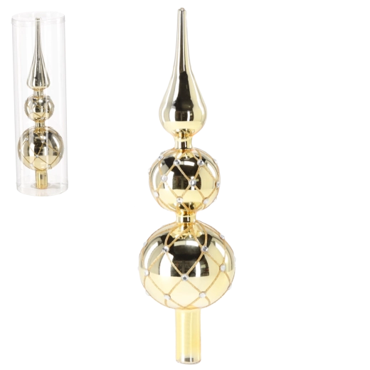 Sommet d’arbre de Noël en verre doré 30 cm