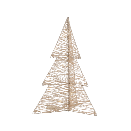 Élégant sapin décoratif avec une teinte or champagne et un éclairage LED chaud qui apporte une atmosphère festive et chaleureuse à votre intérieur. Grâce à l’alimentation par piles, vous pouvez le placer partout ; le minuteur intégré 6/18 h économise l’énergie et garantit une utilisation sans souci. Idéal pour la table, la commode ou l’appui de fenêtre.