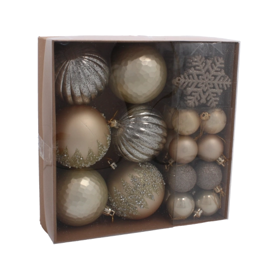 Cette collection équilibrée de 30 boules offre une parfaite harmonie de tons dorés et argentés qui illumine chaque sapin de Noël. Le plastique léger, résistant et incassable assure une suspension aisée et une sécurité accrue dans les foyers avec enfants et animaux. Grâce au mélange de surfaces lisses, brillantes, pailletées et en relief, vous obtenez profondeur, rythme et une impression de luxe frais sur votre sapin.