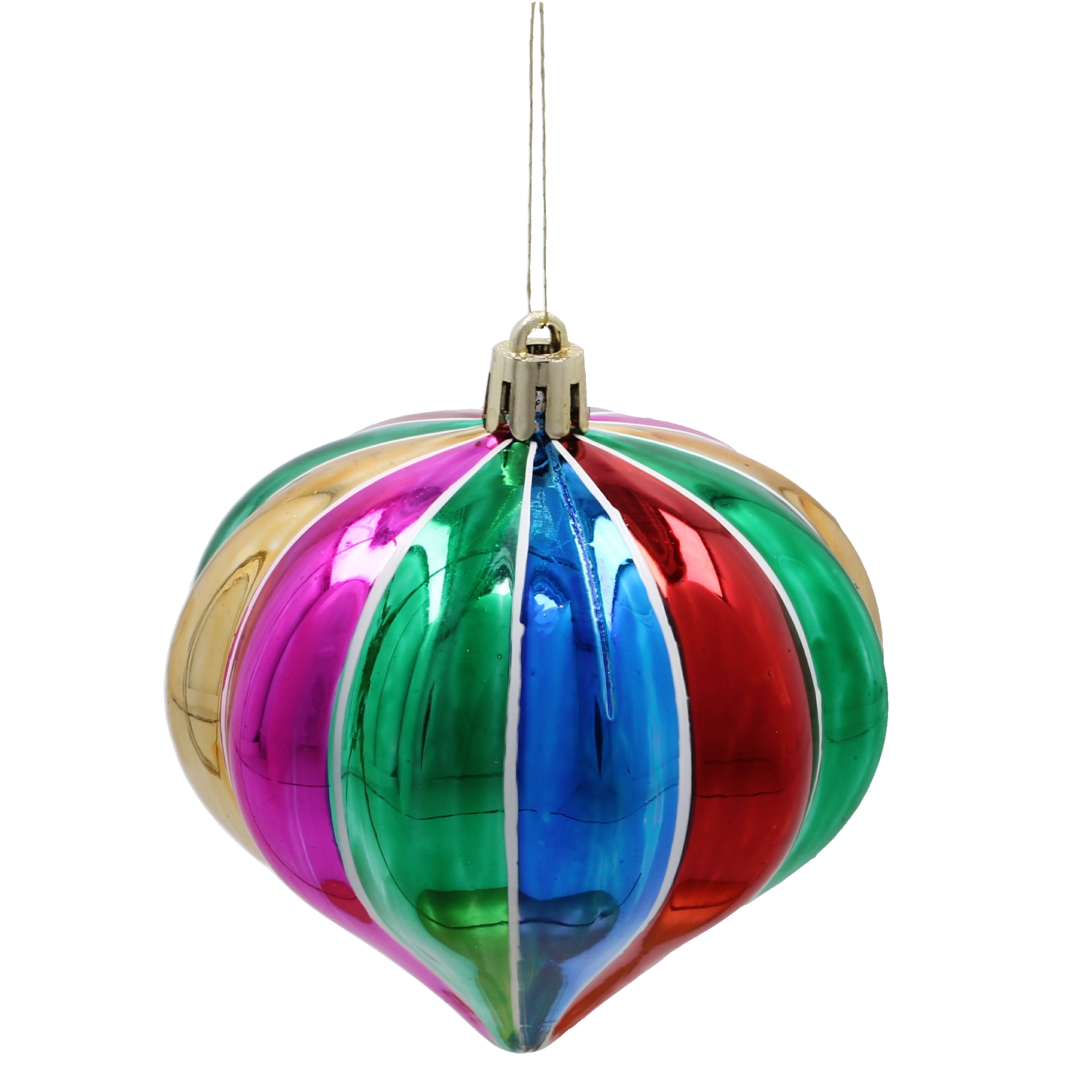 Les rayures verticales multicolores et la finition brillante attirent immédiatement le regard et illuminent tout sapin ou décoration de Noël.