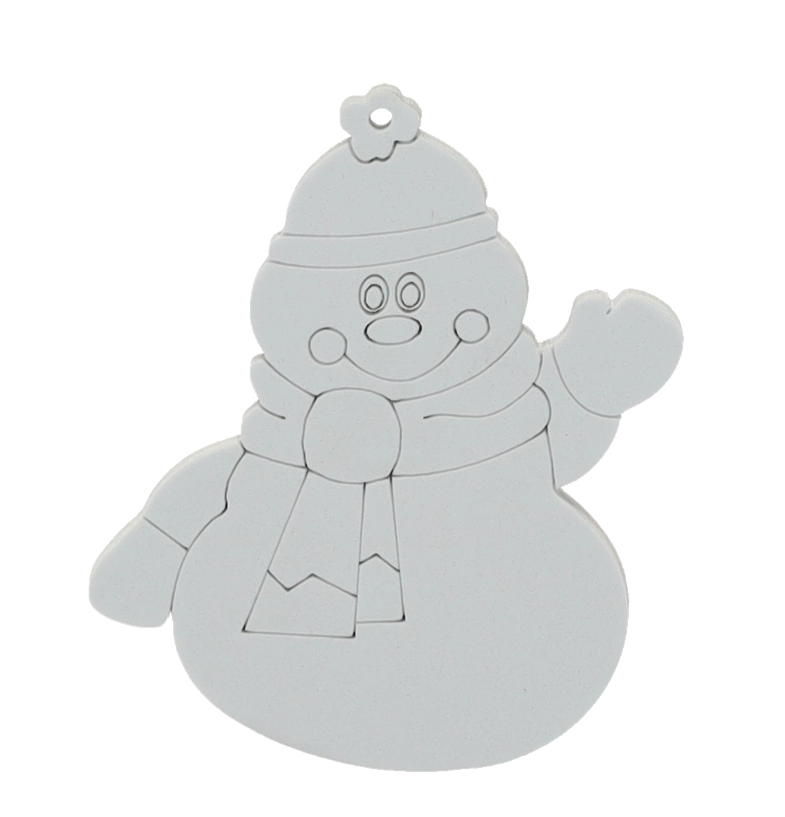 - 3 décorations à suspendre (bonhomme de neige, renne, chaussette) + 4 feutres colorés