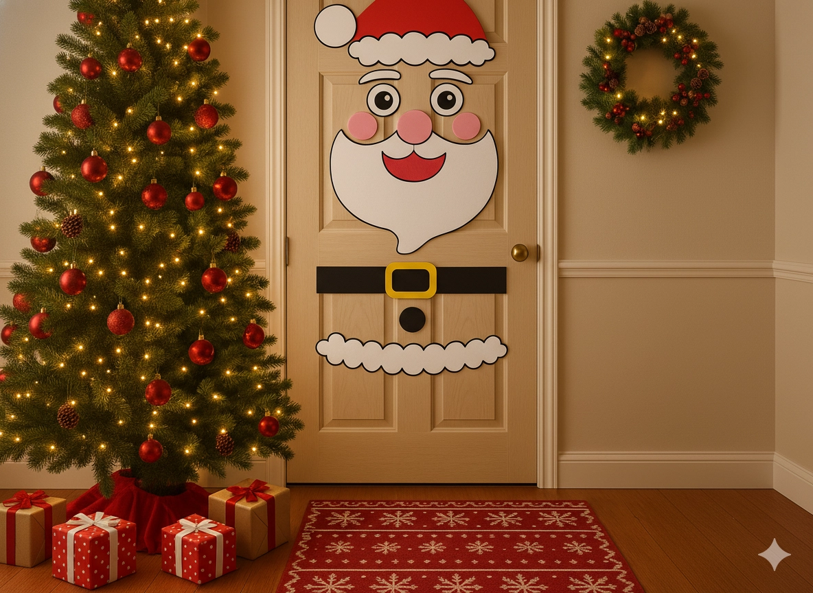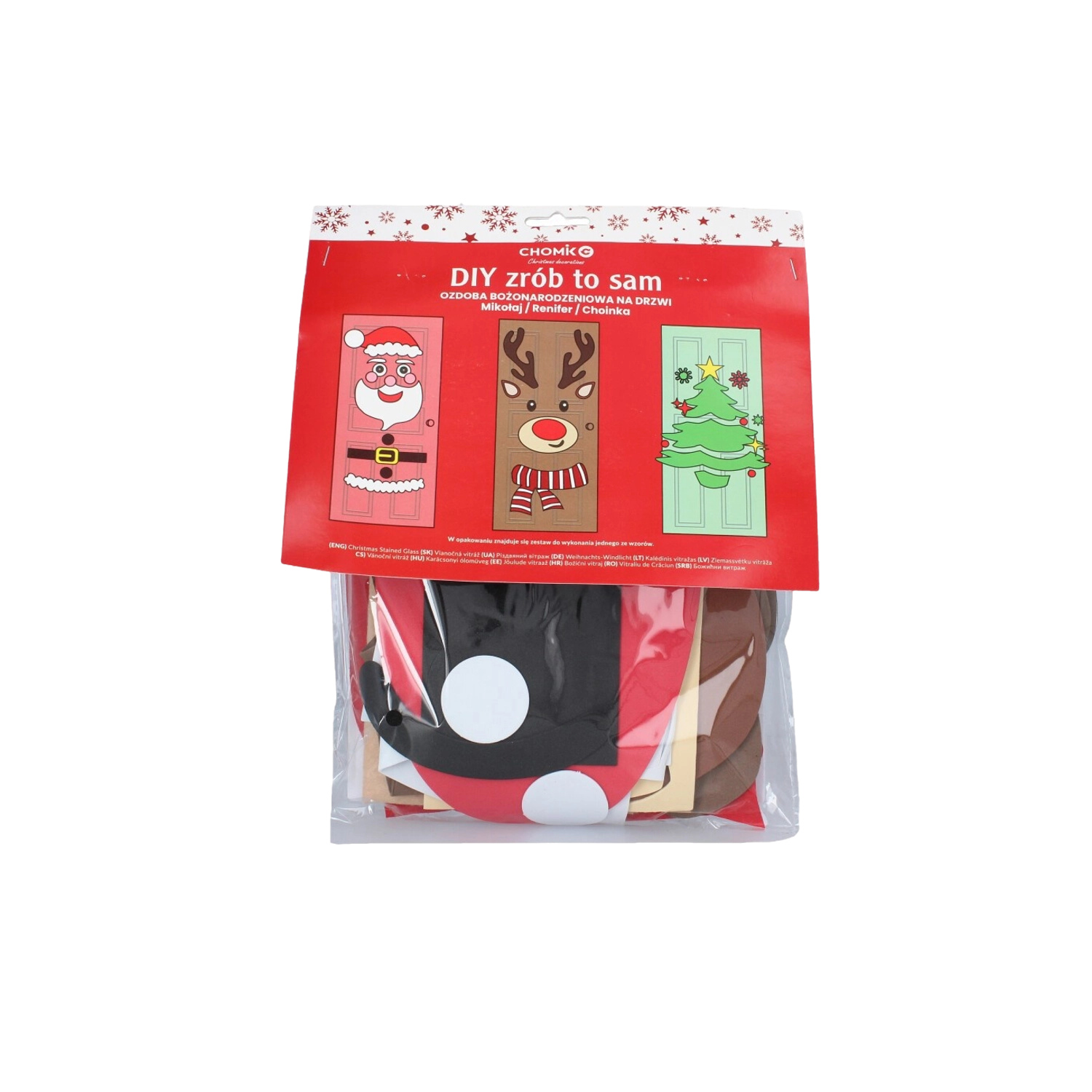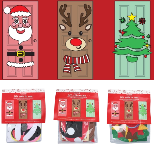Cette décoration festive transforme n’importe quelle porte intérieure ou d’entrée en un élément de Noël saisissant. Les pièces souples en feutrine et autocollantes se fixent aisément et se réagencent à tout moment – idéal pour les enfants comme pour les adultes. Choisissez parmi les motifs sapin de Noël, PÈRE NOËL ou renne et créez une décoration originale à votre image.