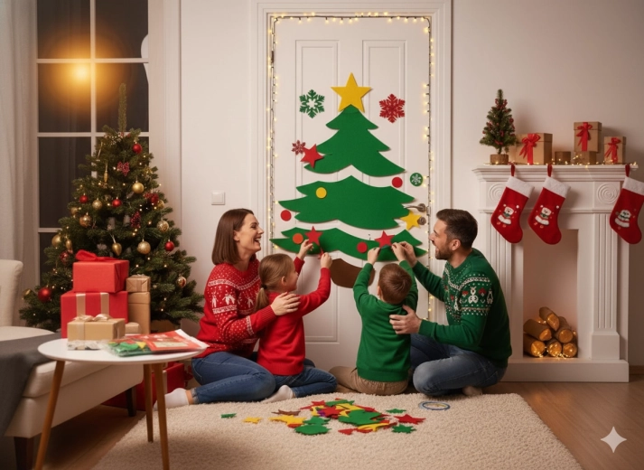 Grâce à une installation simple (velcro ou autocollants), la décoration n’abîme pas les surfaces et convient aux portes et murs lisses. La feutrine résistante garde sa forme et permet une réutilisation pendant de nombreuses saisons.