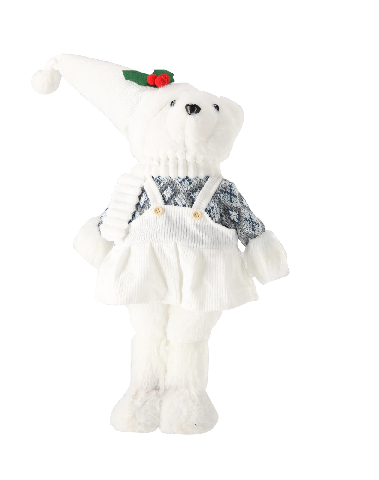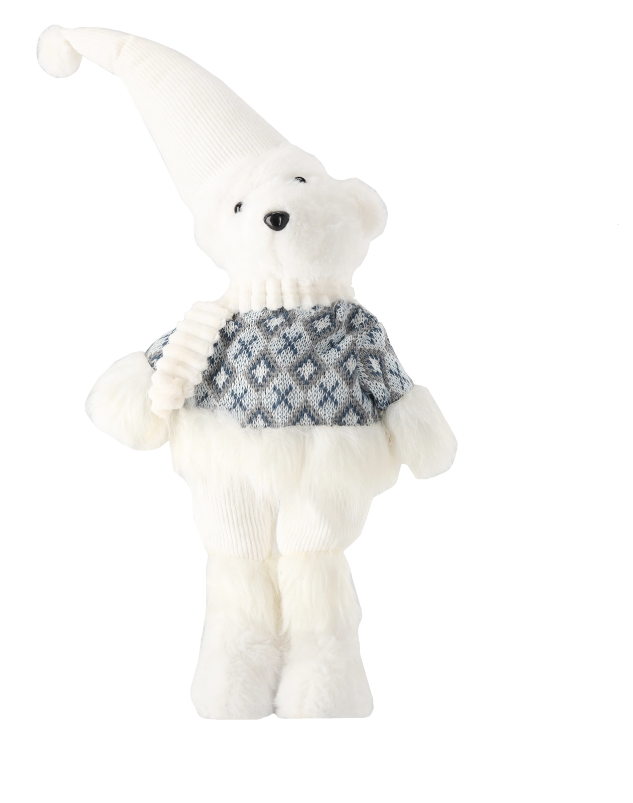 L’ours séduit par sa surface moelleuse, son long bonnet pointu et son pull à motifs. Les détails brodés en toute sécurité lui donnent un air mignon et chaleureux.