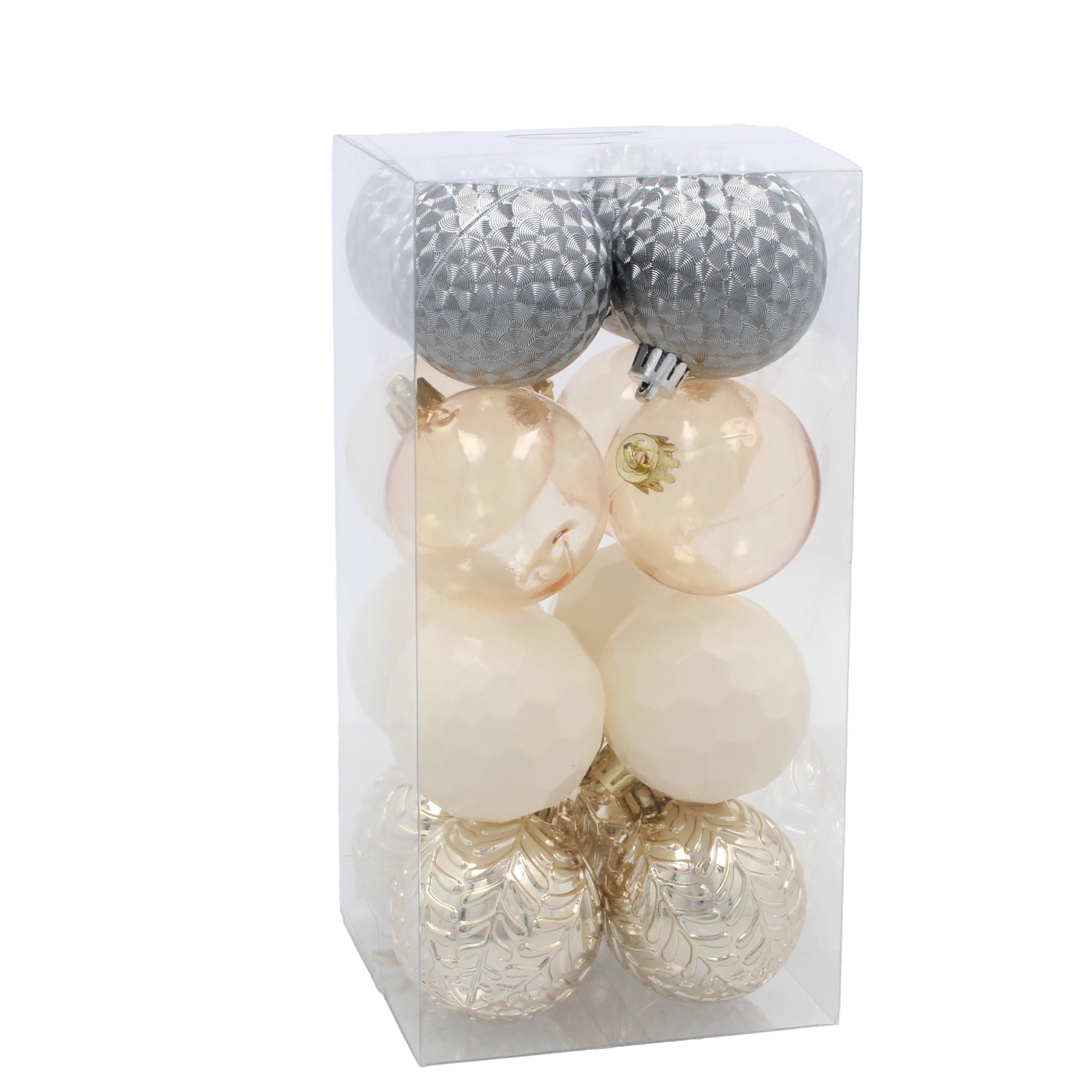 Créez une décoration de Noël parfaitement assortie avec le set de 16 ornements CHOMIK dans des tonalités intemporelles de champagne, gris et blanc. La combinaison de finitions lisses et décorées confère à votre sapin et à vos décorations un caractère luxueux et moderne, qui s’intègre aussi bien aux intérieurs traditionnels que contemporains.