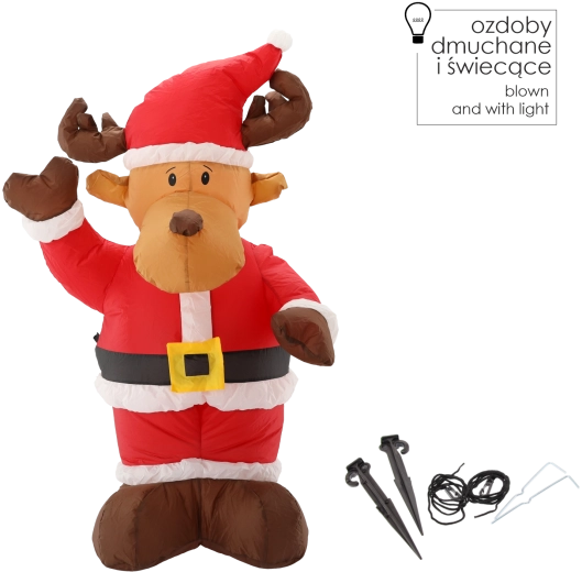 Illuminez votre maison et votre jardin avec ce renne gonflable adorable, coiffé d’un bonnet du Père Noël et haut de 135 cm. Grâce au rétroéclairage LED intégré, il se distingue de jour comme de nuit, le gonflage automatique rapide assure une utilisation aisée et la résistance aux intempéries (IP44) permet une installation extérieure en toute tranquillité. Le colis comprend également des piquets d’ancrage pour plus de stabilité.