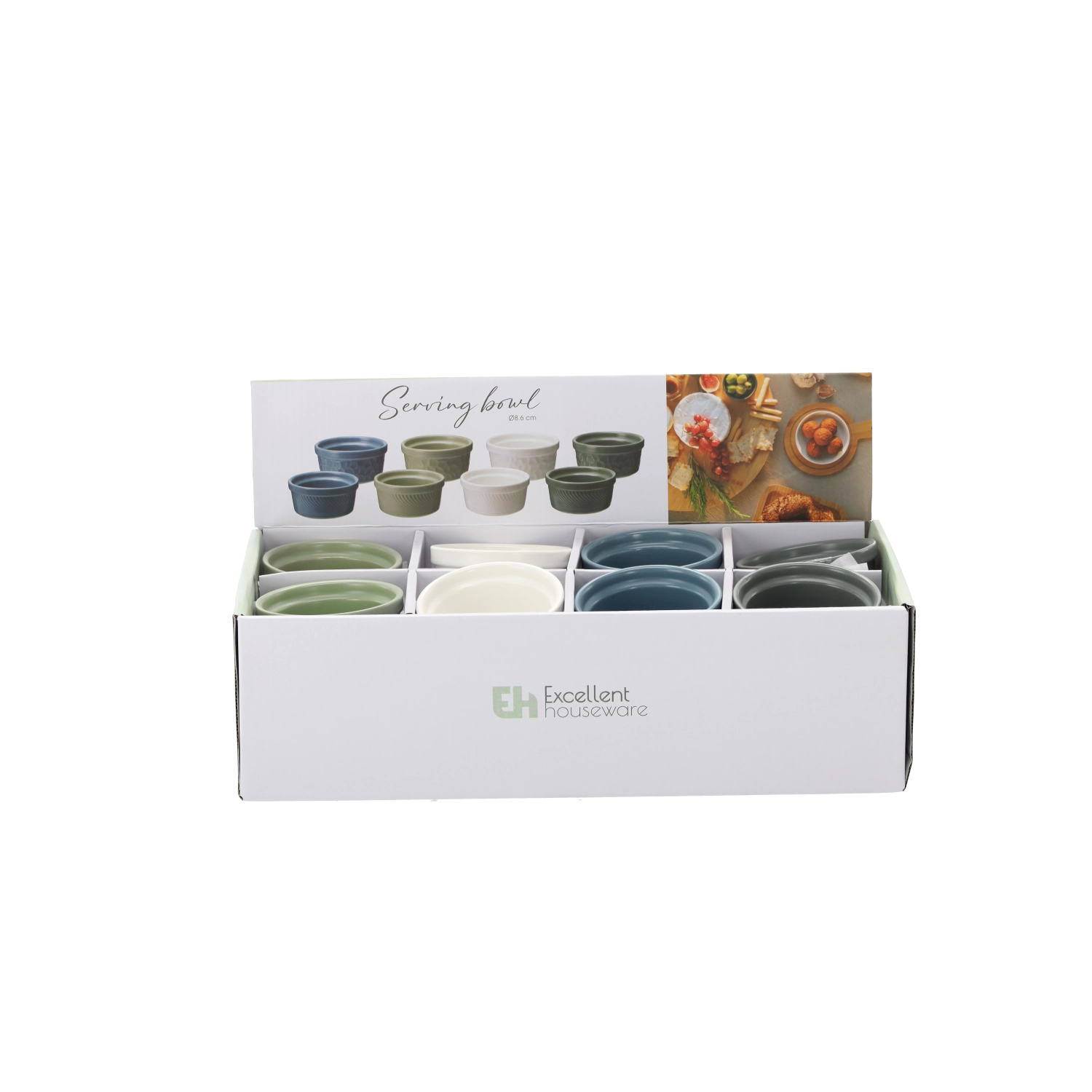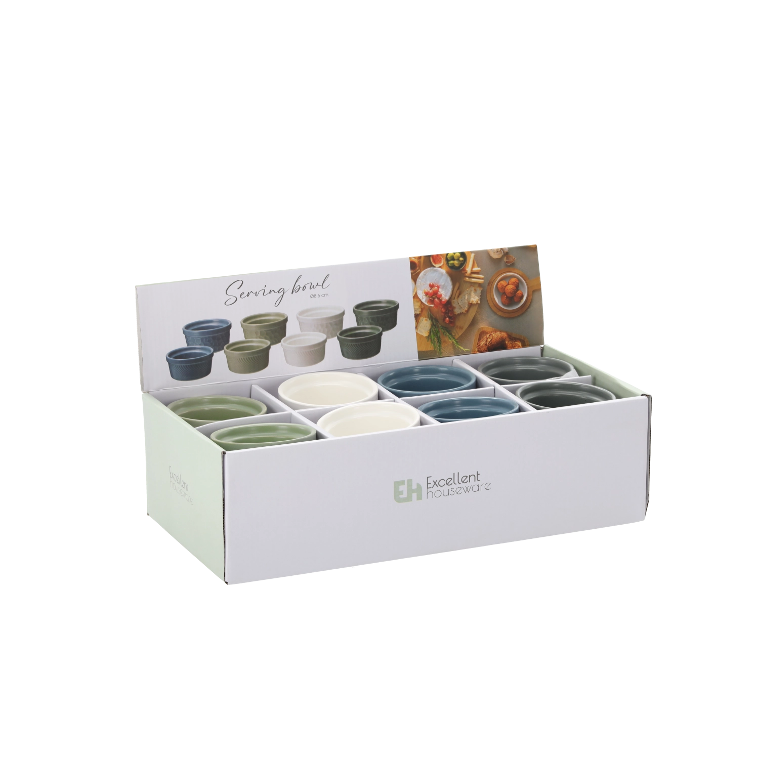 Le diamètre compact de 8,6 cm et la hauteur de 4 cm sont idéaux pour de petites portions. Choisissez parmi les variantes blanche, grise, verte et bleue.