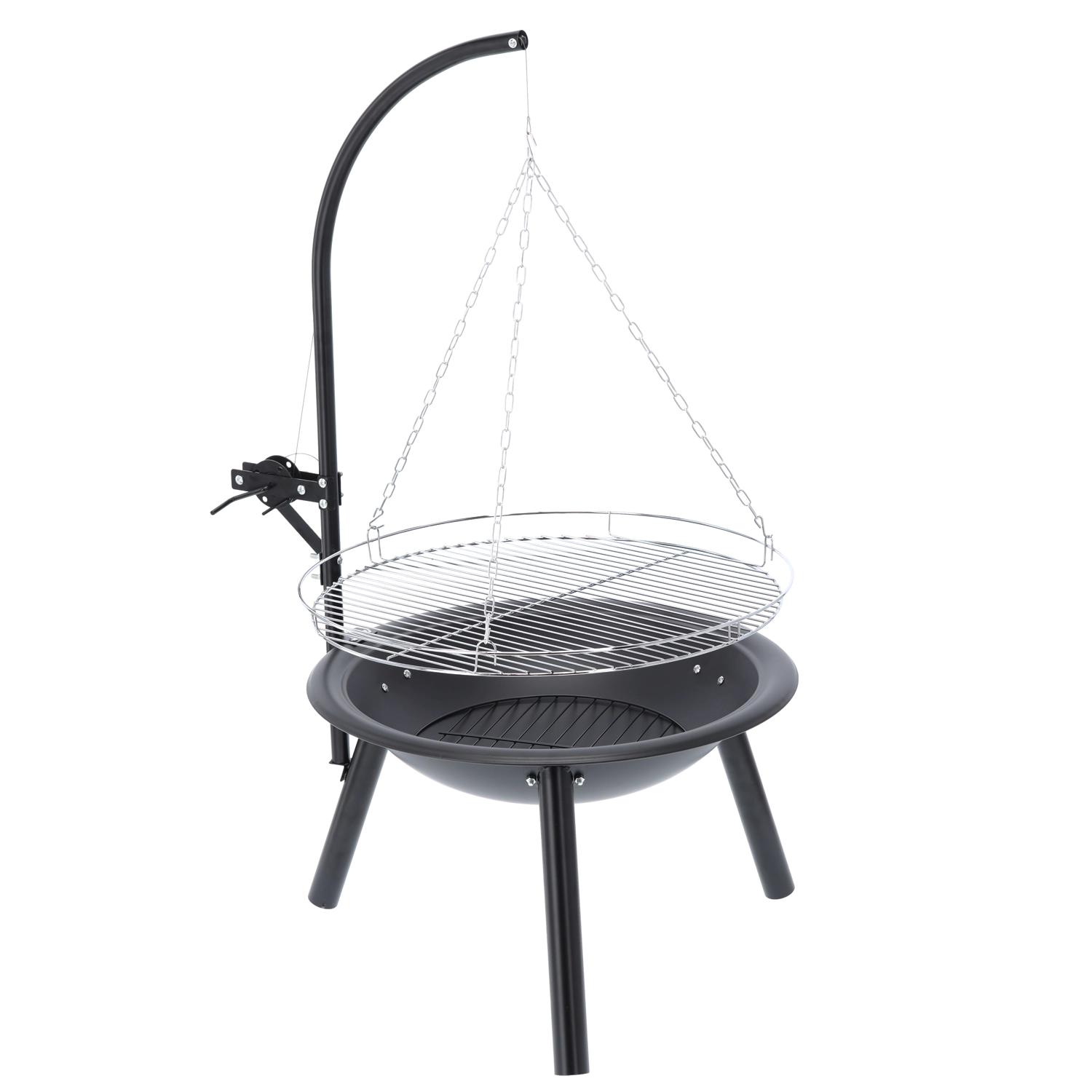 Profitez du goût authentique des plats préparés sur feu ouvert. Le gril suspendu combine le charme traditionnel du brasero avec la praticité d’une grille réglable en hauteur, afin d’adapter facilement l’intensité de la chaleur aux différents types de viande, légumes et fromages. Le trépied stable et la cuve de brasero robuste garantissent une utilisation sûre et une longue durée de vie.