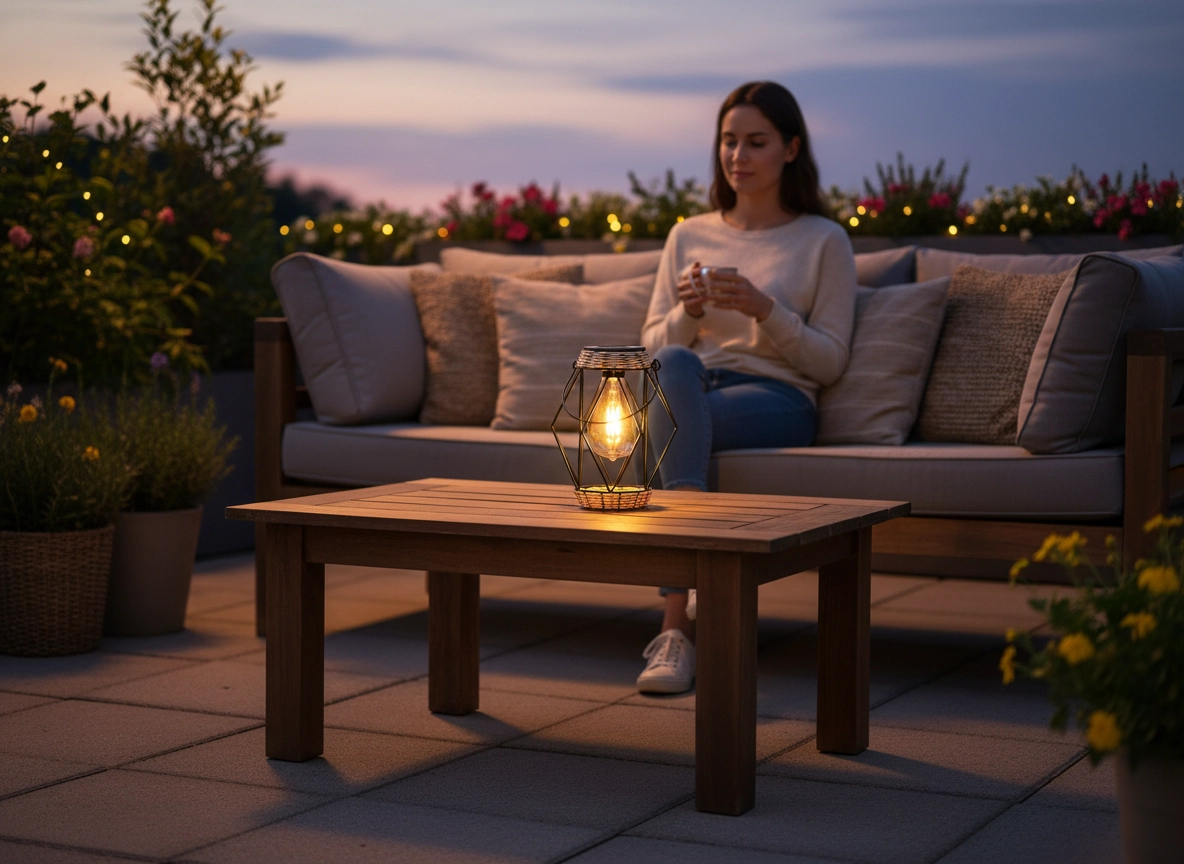Il suffit de la placer au soleil – le panneau solaire recharge la batterie intégrée dans la journée et, le soir, la lumière s’allume automatiquement pour créer une ambiance agréable sur la terrasse, le balcon ou au jardin. Ses dimensions compactes conviennent à une table basse, des marches d’escalier ou comme accent décoratif près d’un coin détente.