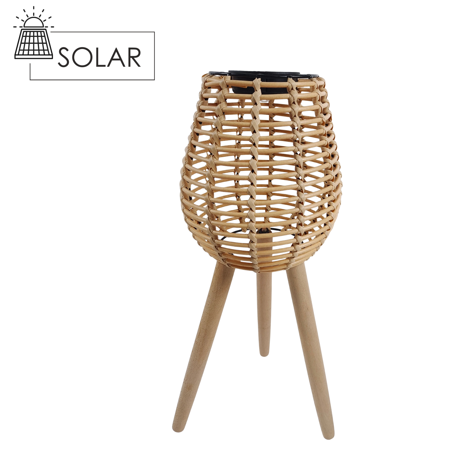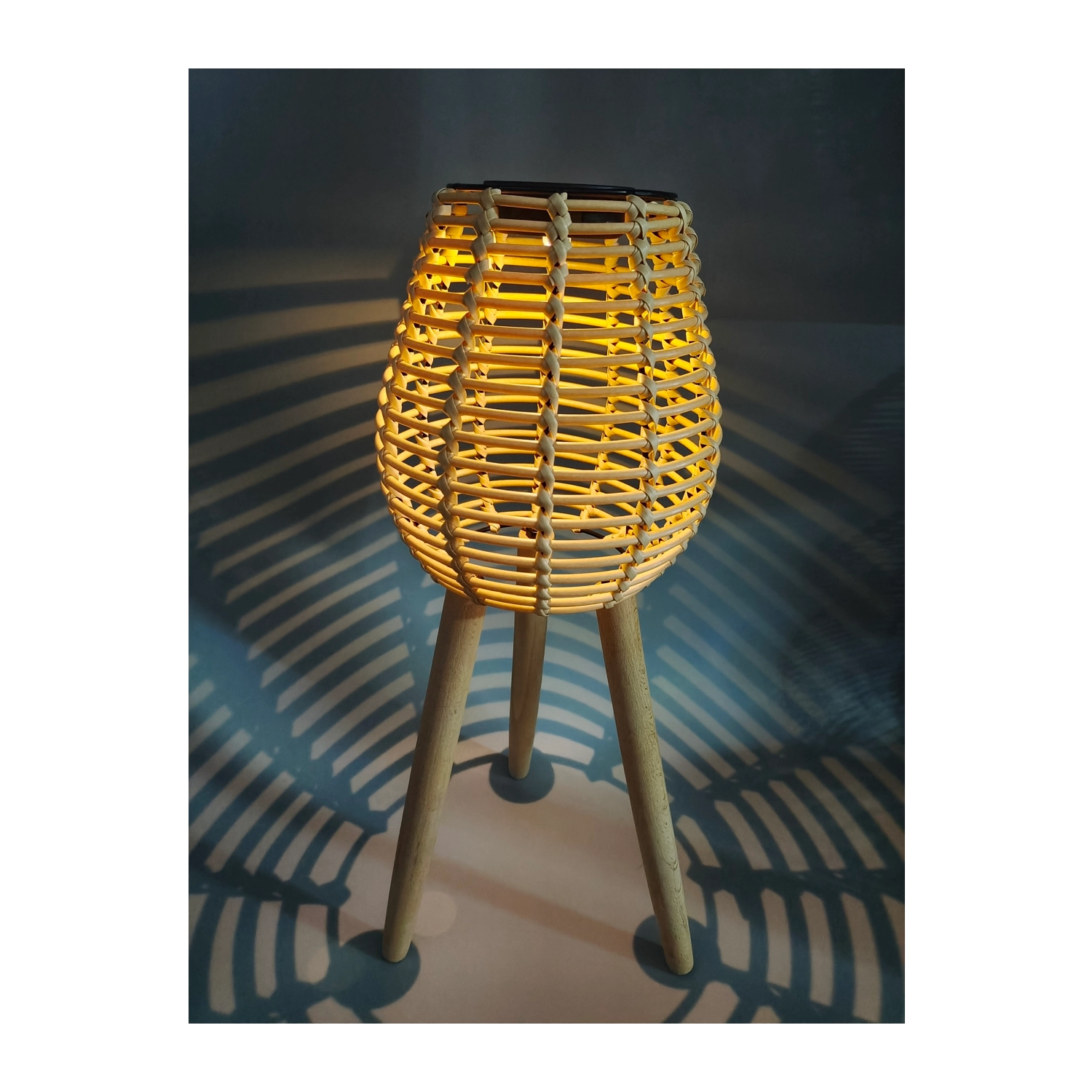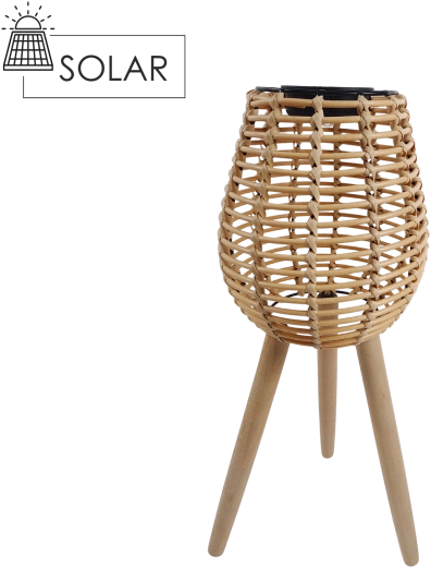 Grâce à son fonctionnement sans fil, vous l’installez facilement partout — sur une terrasse en bois, le long d’une allée de jardin ou sur un balcon. Le look rotin tressé apporte une touche bohème moderne et les pieds en bois assurent stabilité et élégance.