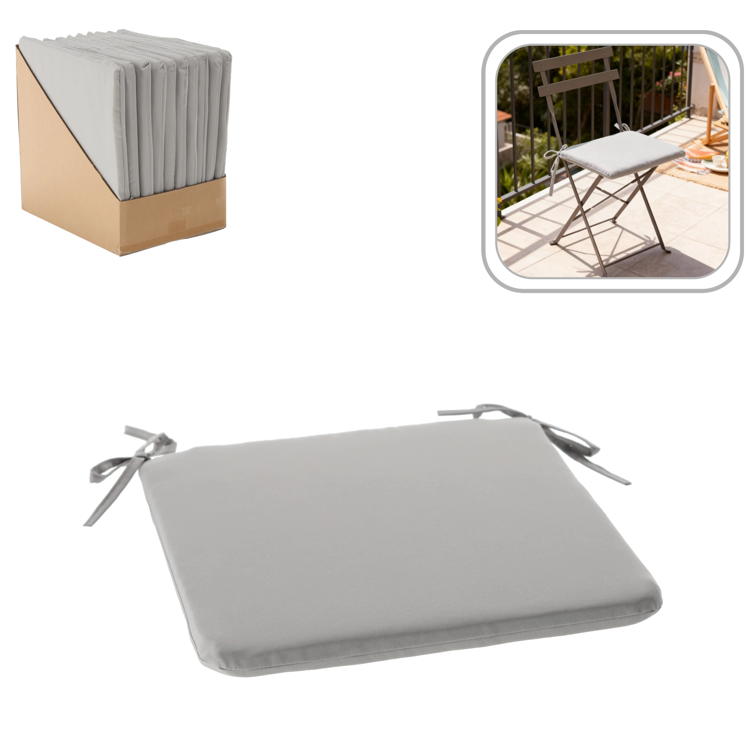 Coussin de chaise 40 × 40 × 3 cm gris clair