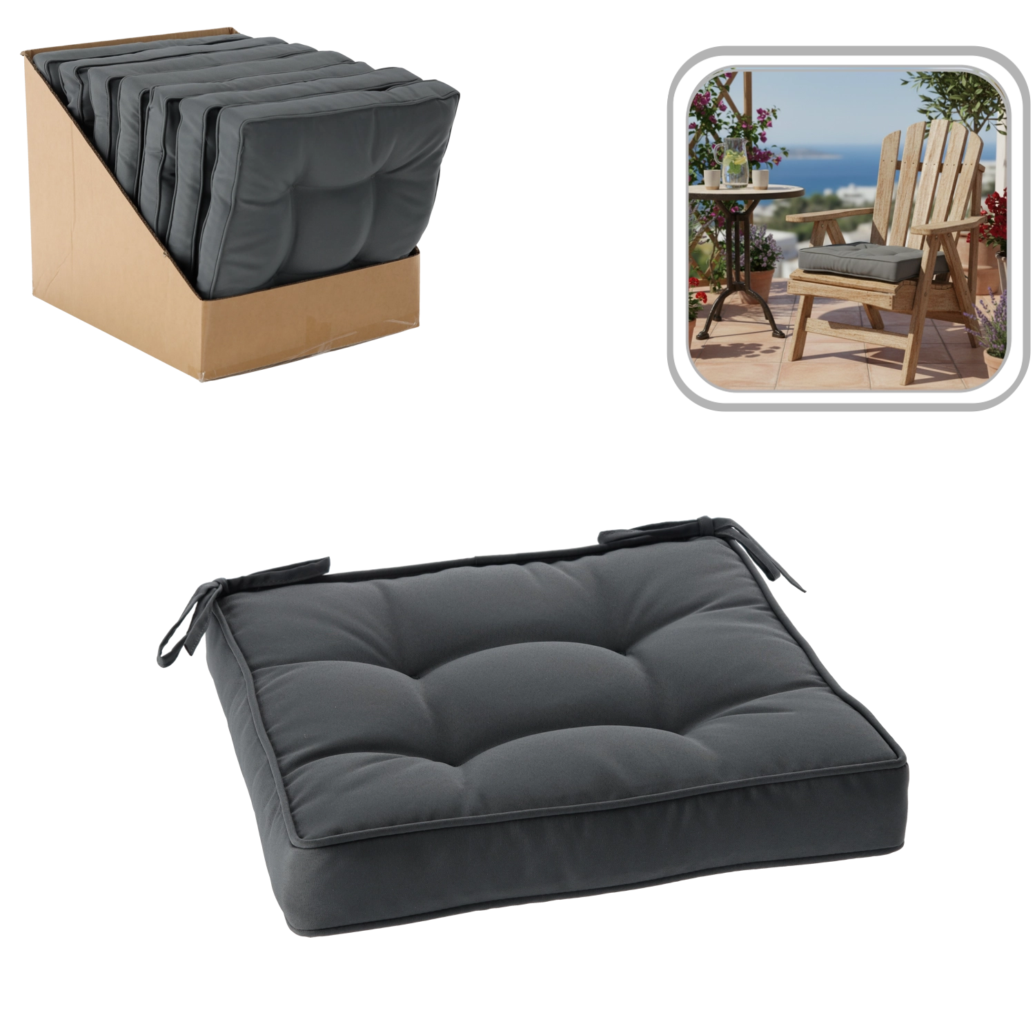Rafraîchissez la salle à manger, la cuisine ou la terrasse avec un coussin d’assise qui allie style moderne et confort au quotidien. La teinte gris foncé s’harmonise aisément avec la plupart des styles et matériaux, du bois au métal, tout en étant très pratique à entretenir.