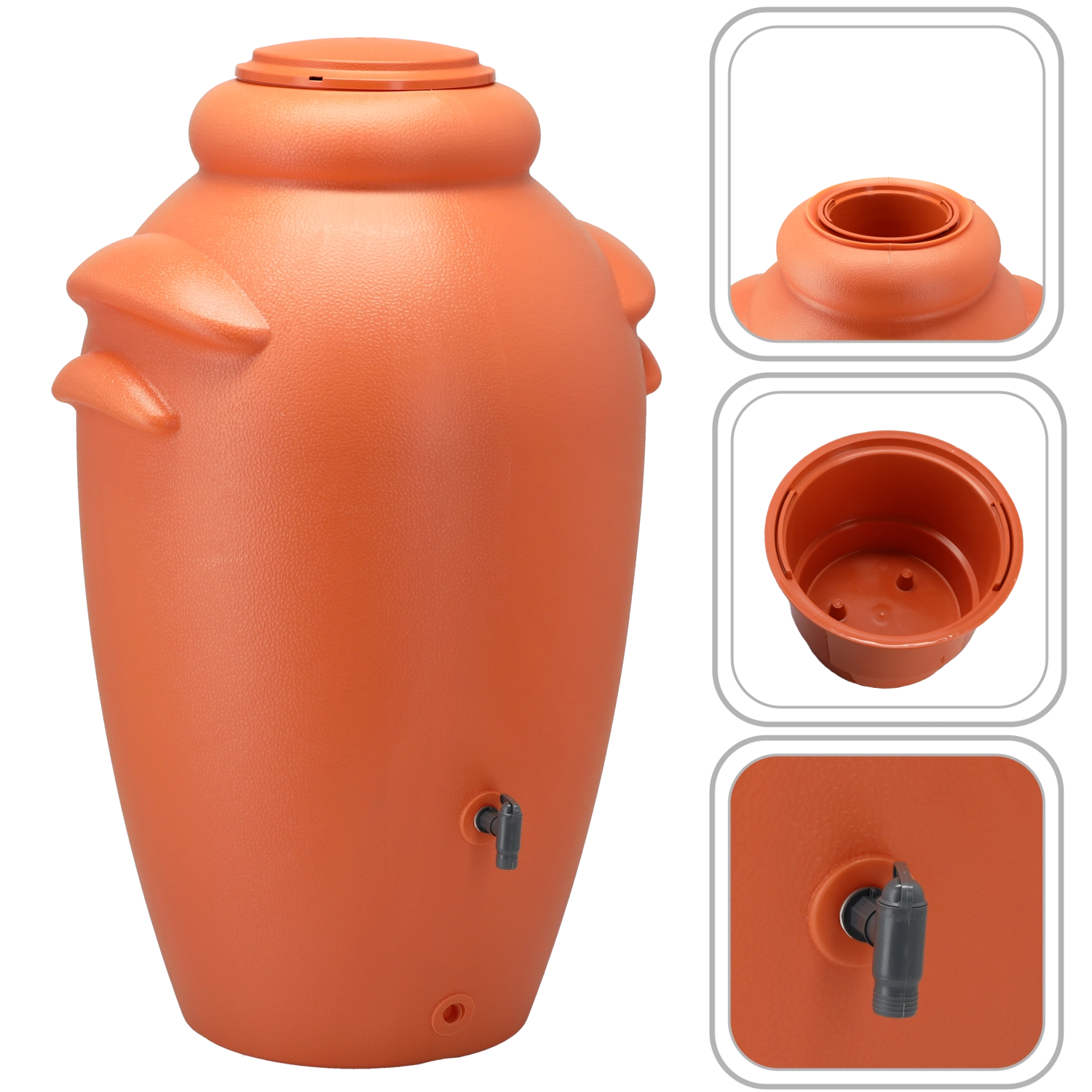 Élégant réservoir de jardin pour eau de pluie de 350 l en coloris brique, combinant stockage d’eau pratique et design décoratif. Grâce à la jardinière intégrée (profondeur 20 cm), vous créez facilement une touche de verdure directement sur la cuve. Deux orifices filetés pour robinet et tuyau assurent un prélèvement aisé ainsi qu’un vidage facile avant l’hiver. Des matériaux résistants aux UV garantissent une longue durée de vie et une excellente stabilité en extérieur.