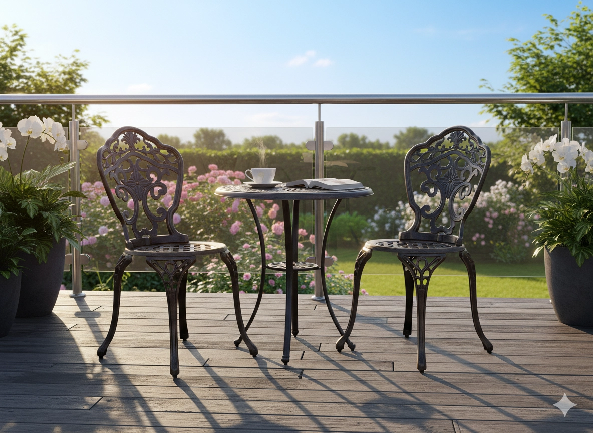Avec un diamètre de Ø68 cm, la table est parfaite pour deux personnes – pour le café du matin, le thé de l’après-midi ou une soirée conviviale. Légère mais stable, sa construction permet de la déplacer facilement entre balcon, terrasse et jardin. Pour un style harmonisé, complétez avec des fauteuils assortis et créez un ensemble bistro cohérent.