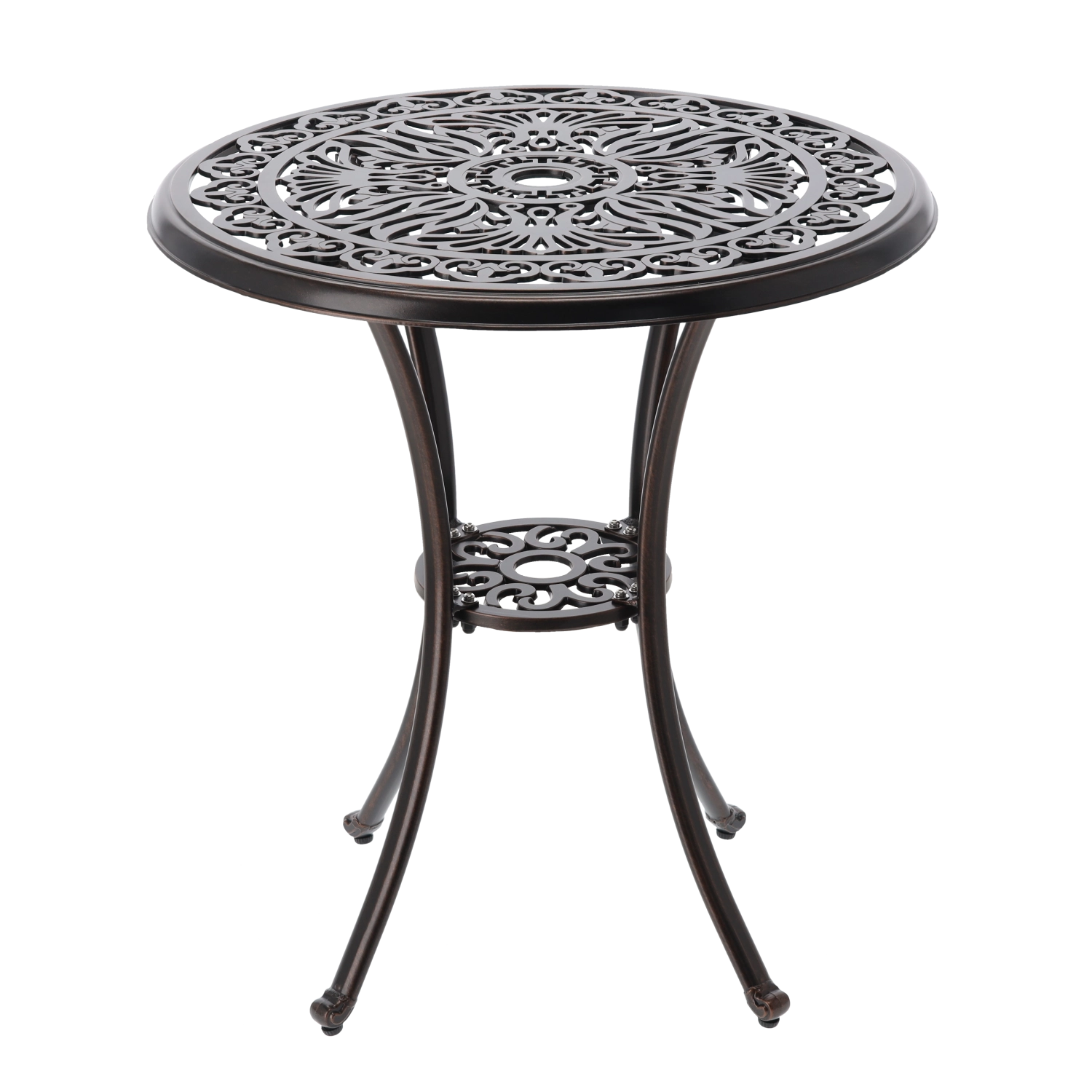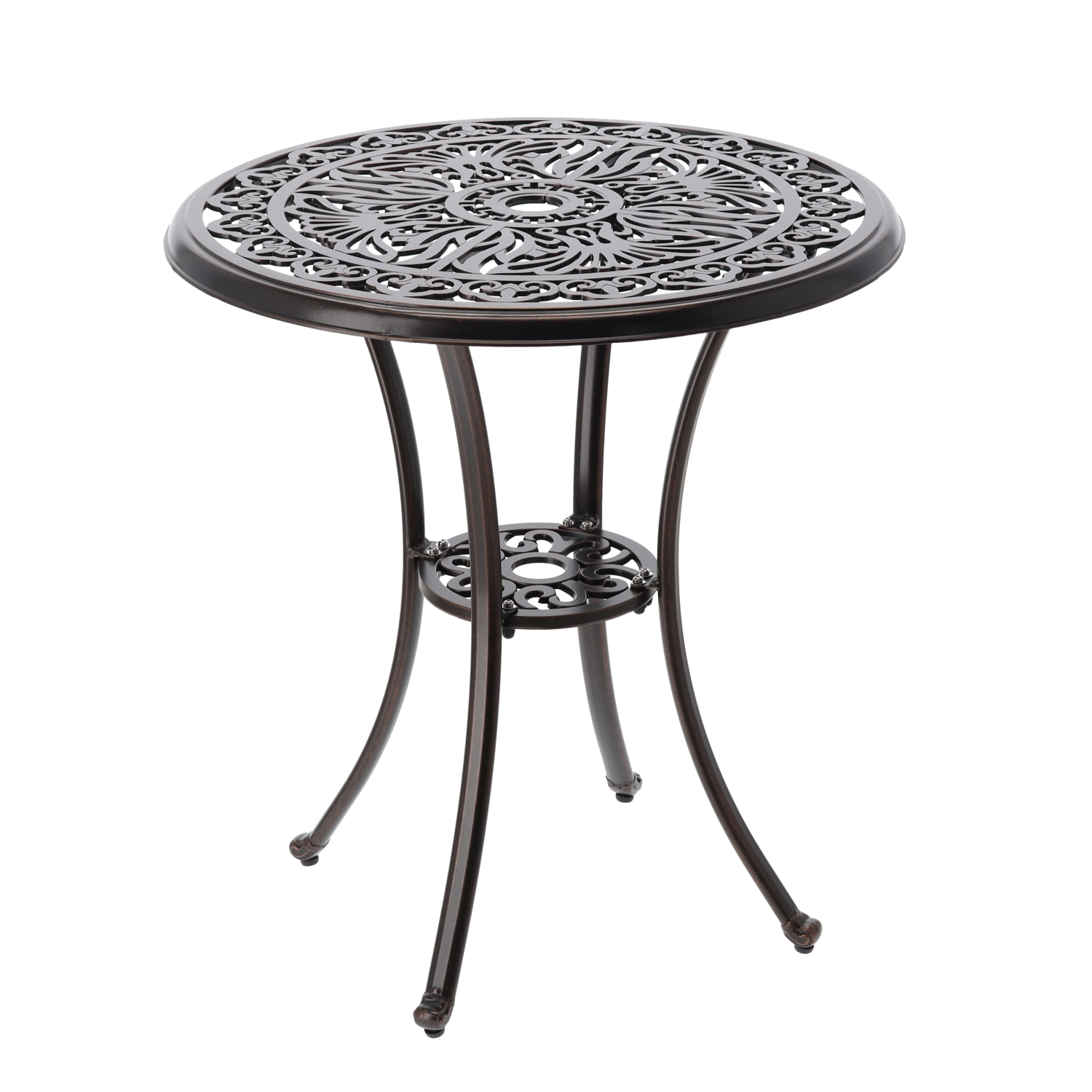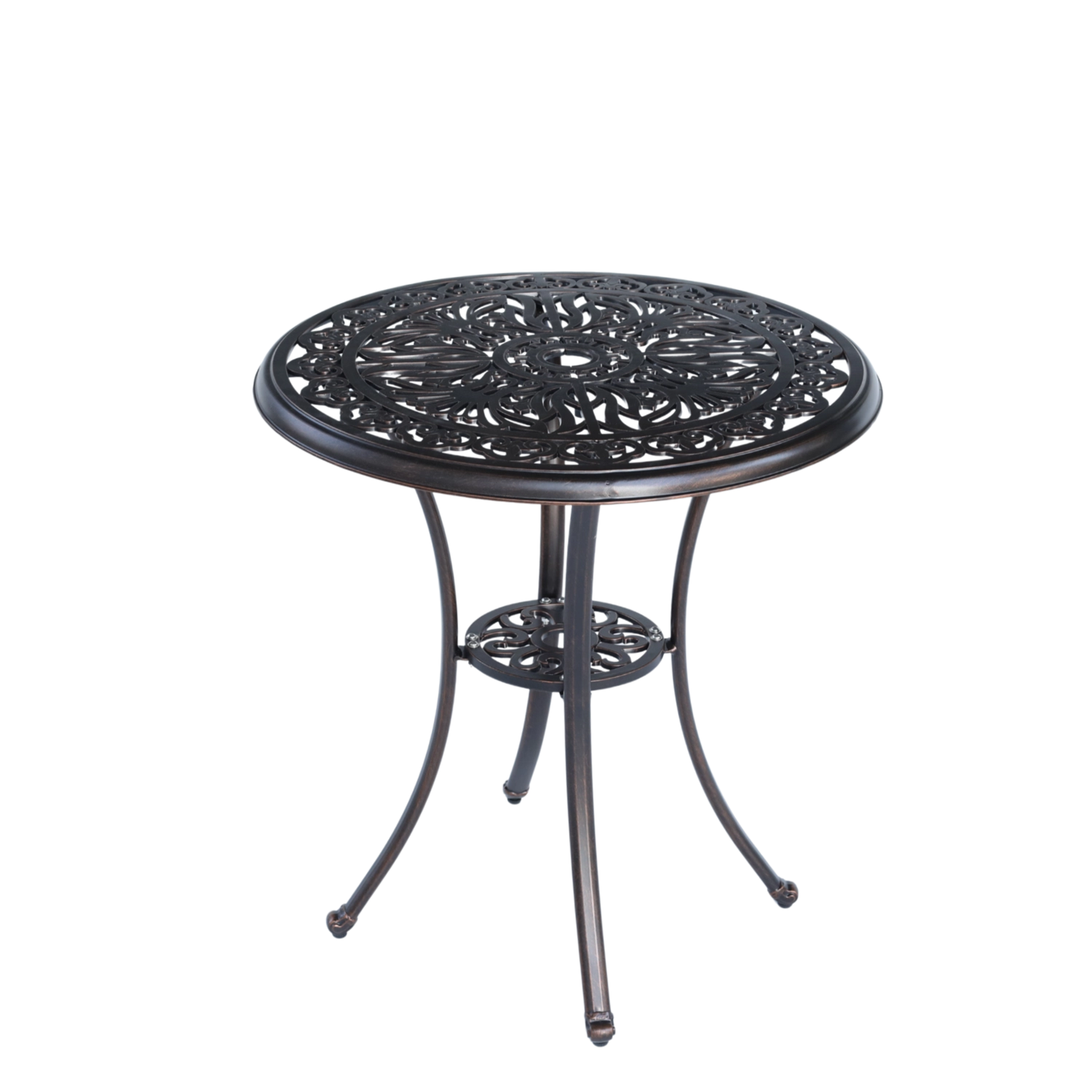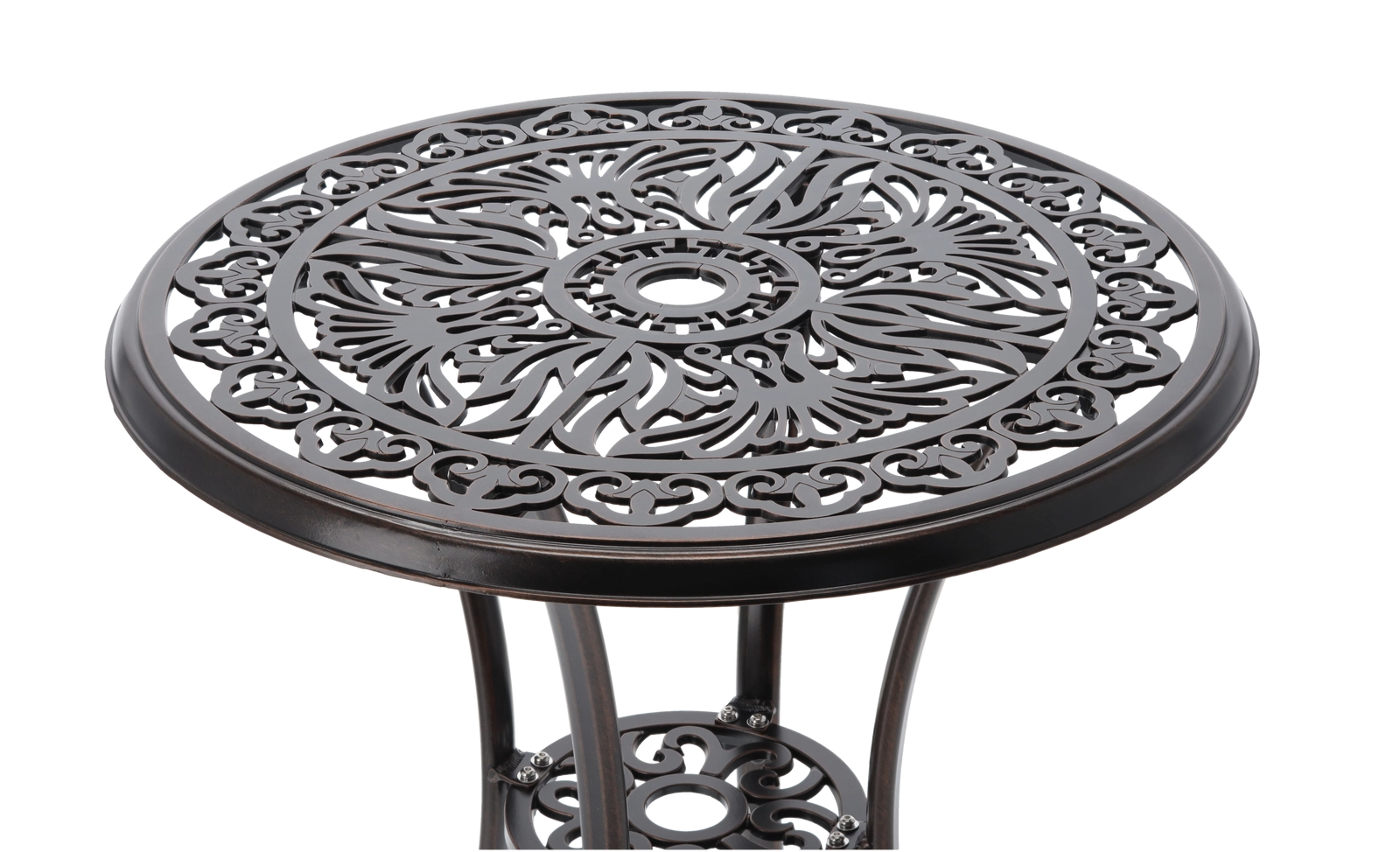 Le plateau rond ajouré et les courbes décoratives des pieds apportent du caractère à l’espace. La table s’intègre parfaitement aux décors rustiques comme élégants.