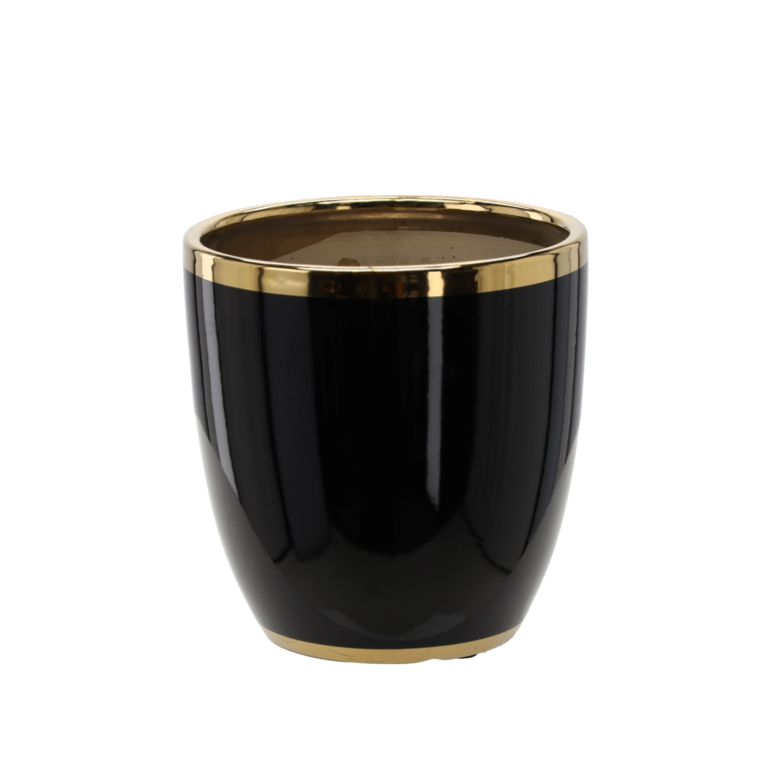 Élégant cache-pot en céramique noir avec liseré doré, apportant une touche luxueuse à votre intérieur. Sa fabrication de qualité et sa résistance jusqu’à −10 °C assurent une longue durée de vie et un entretien facile.