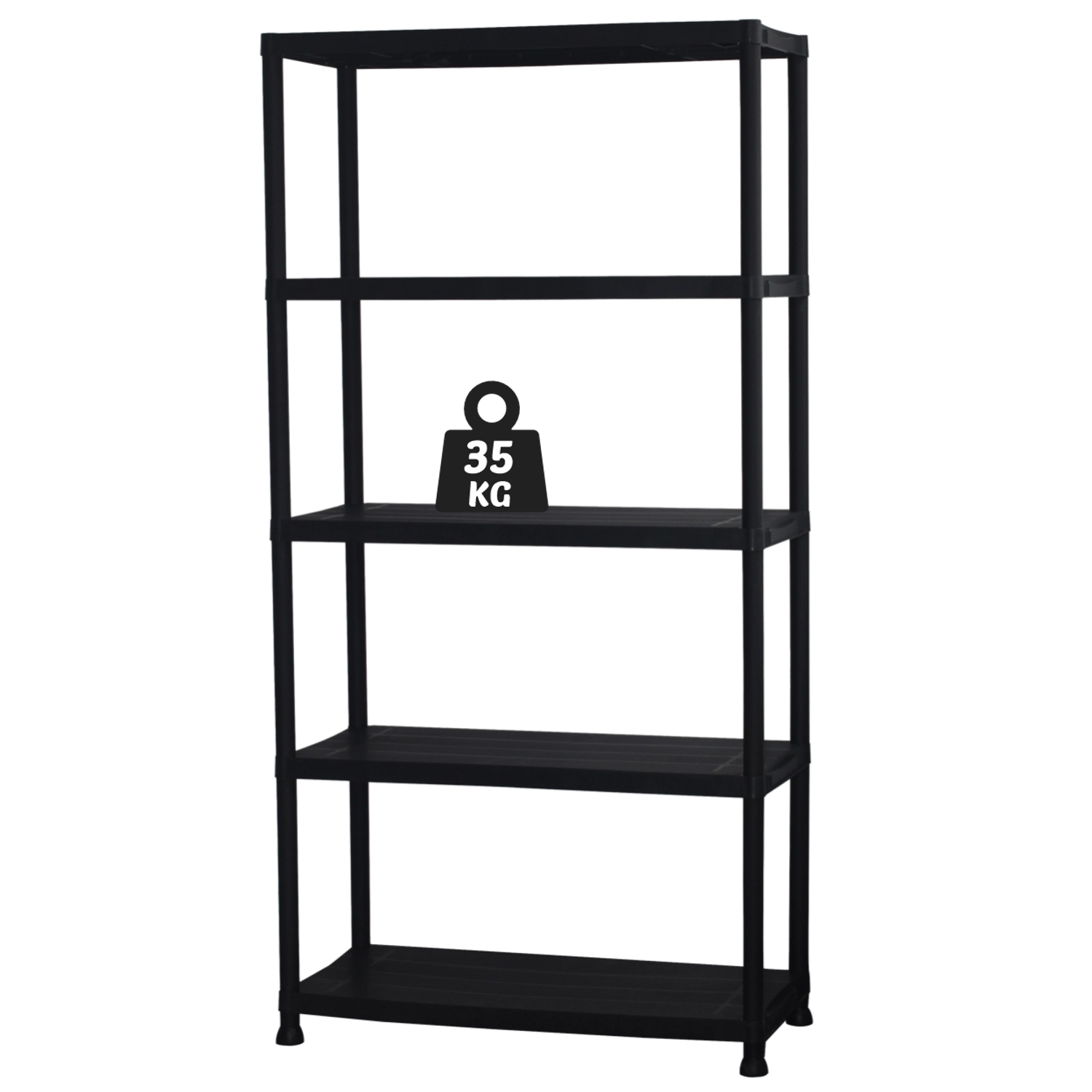 Chaque niveau supporte jusqu’à 35 kg. Idéale pour les outils, les petits matériaux et les bacs plus lourds, l’étagère reste stable même à pleine charge.